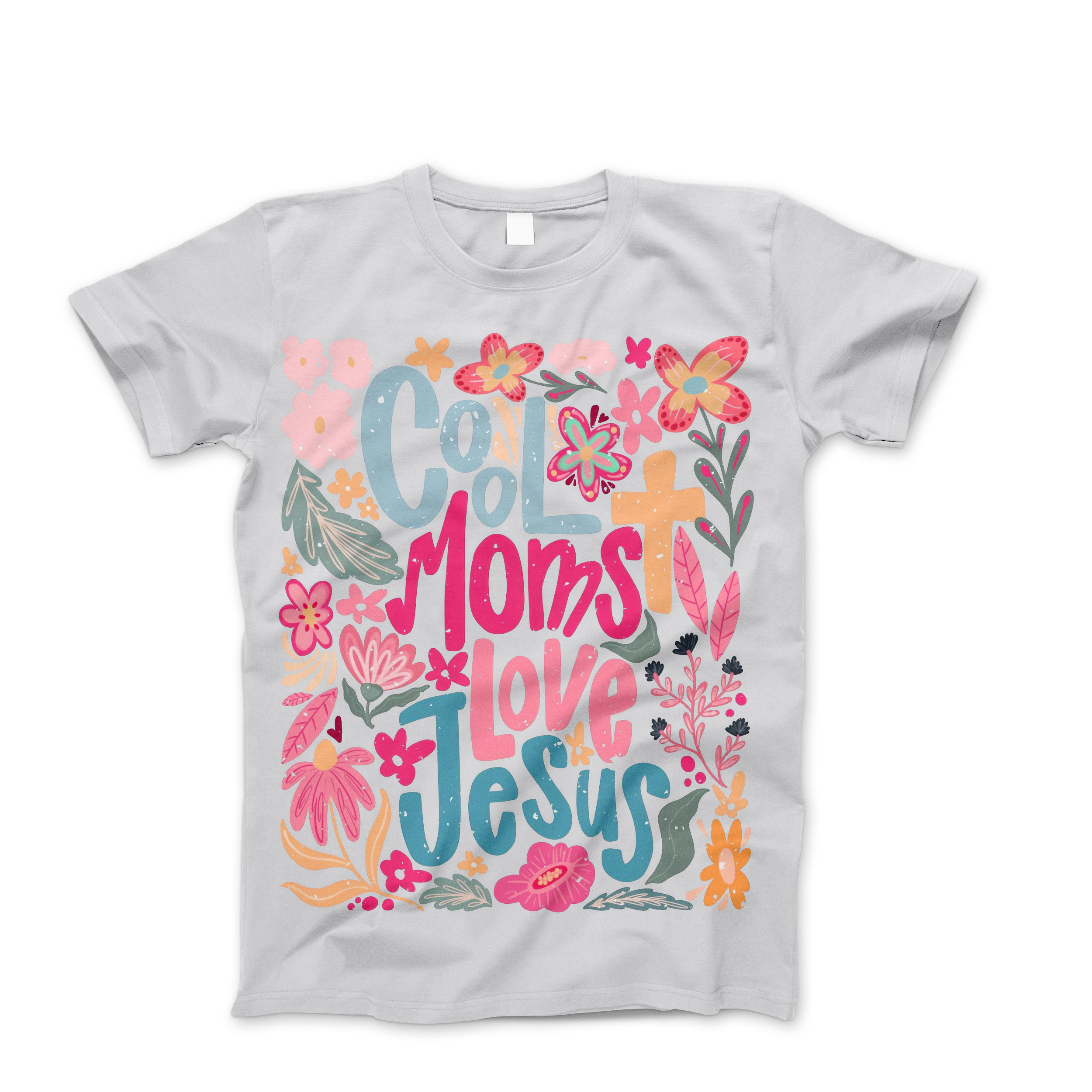 Photograph of four blank t-shirts greys beige and army green. Clipping path included. Ready for your