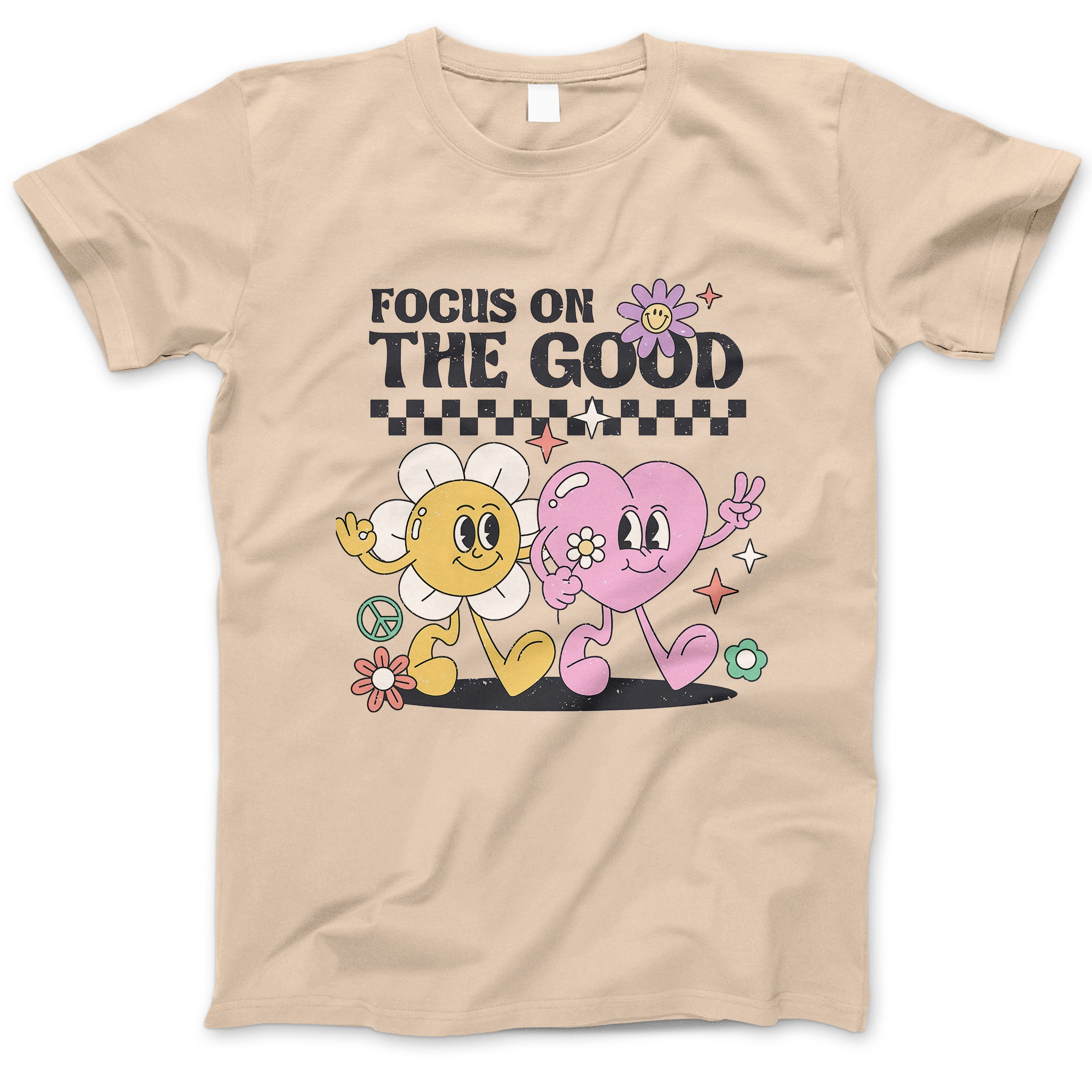 Photograph of four blank t-shirts greys beige and army green. Clipping path included. Ready for your