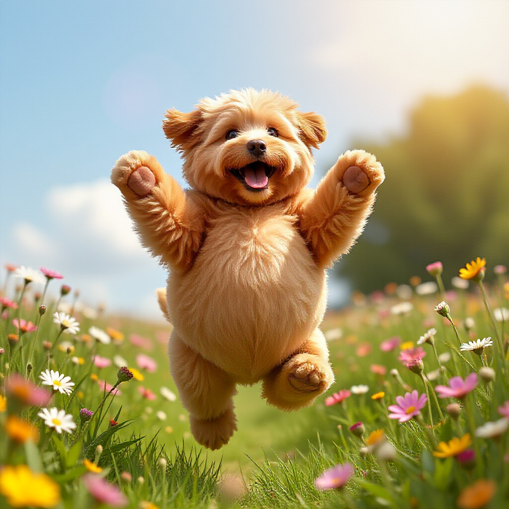 photorealistic picture of a bouncy dog with an absurdly large bouncy belly being over bouncy jumping
