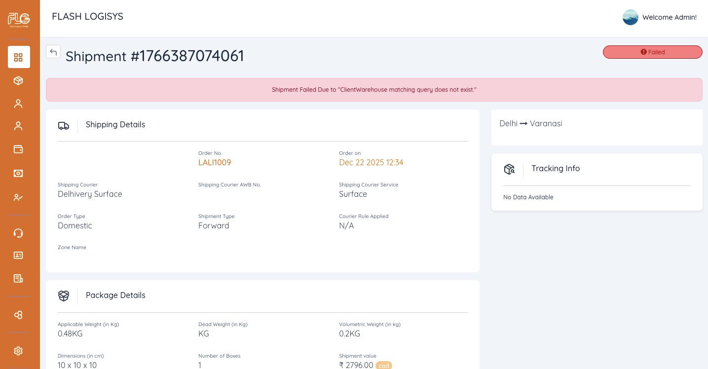 Some errors have occured and the system couldn't process your request.