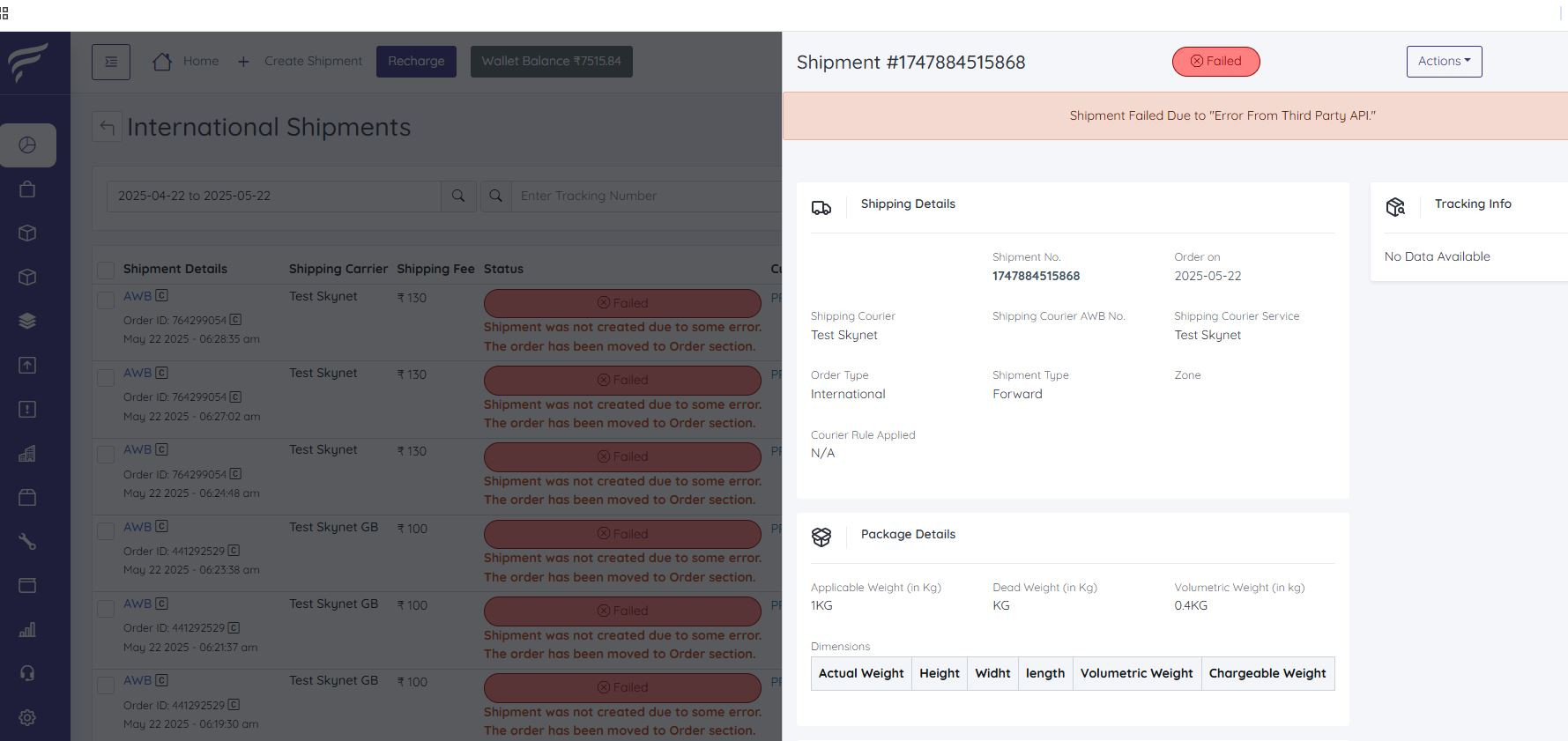 Some errors have occured and the system couldn't process your request.