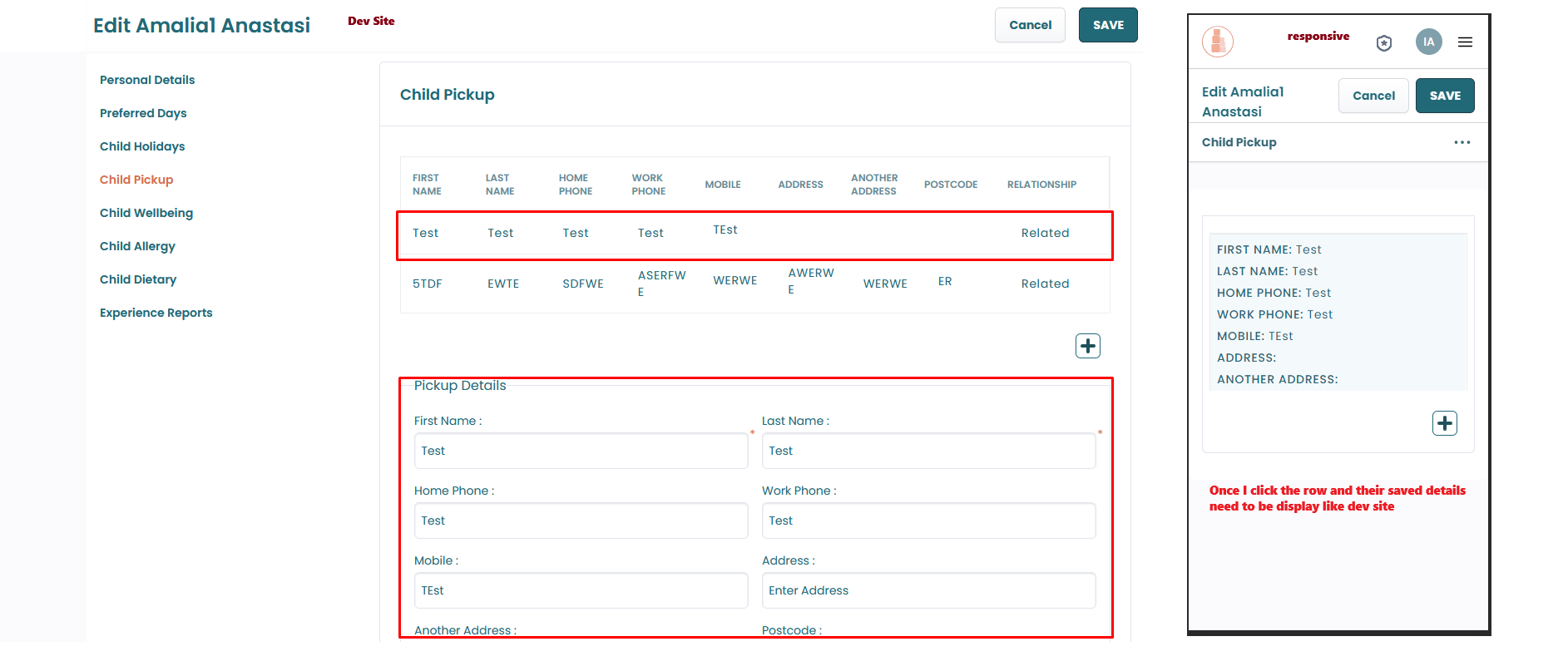 Pickup Details Issues