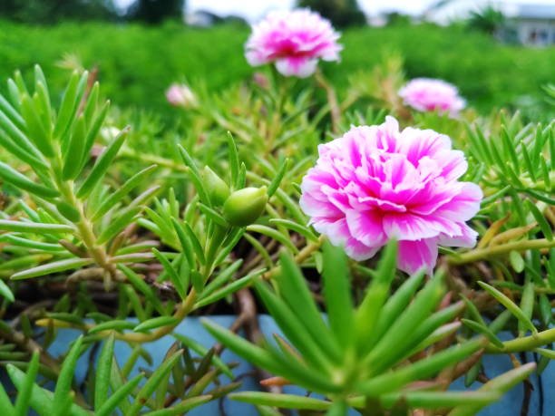 Pink and white Portulaca flower blossoming