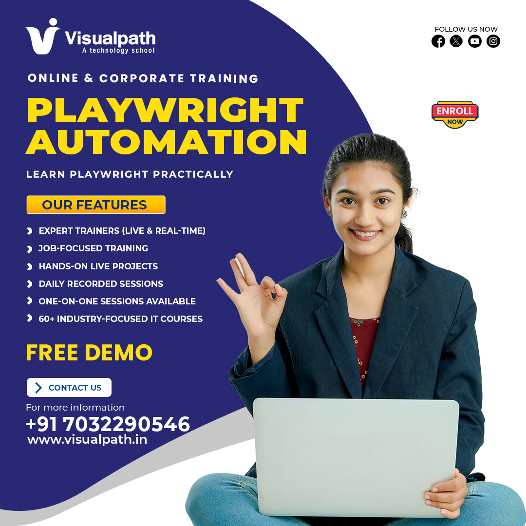 Visualpath offers an advanced Playwright Course Online designed for professionals who want to master modern automation frameworks.Our Playwright Training In Hyderabad covers real-time testing scenarios, live projects, and job-oriented training.The program also includes advanced modules in Playwright Automation Testing Hyderabad to help you build strong QA automation skills. Learners from USA, UK,& globally trust Visualpath. Corporate training available.Call +91-7032290546.