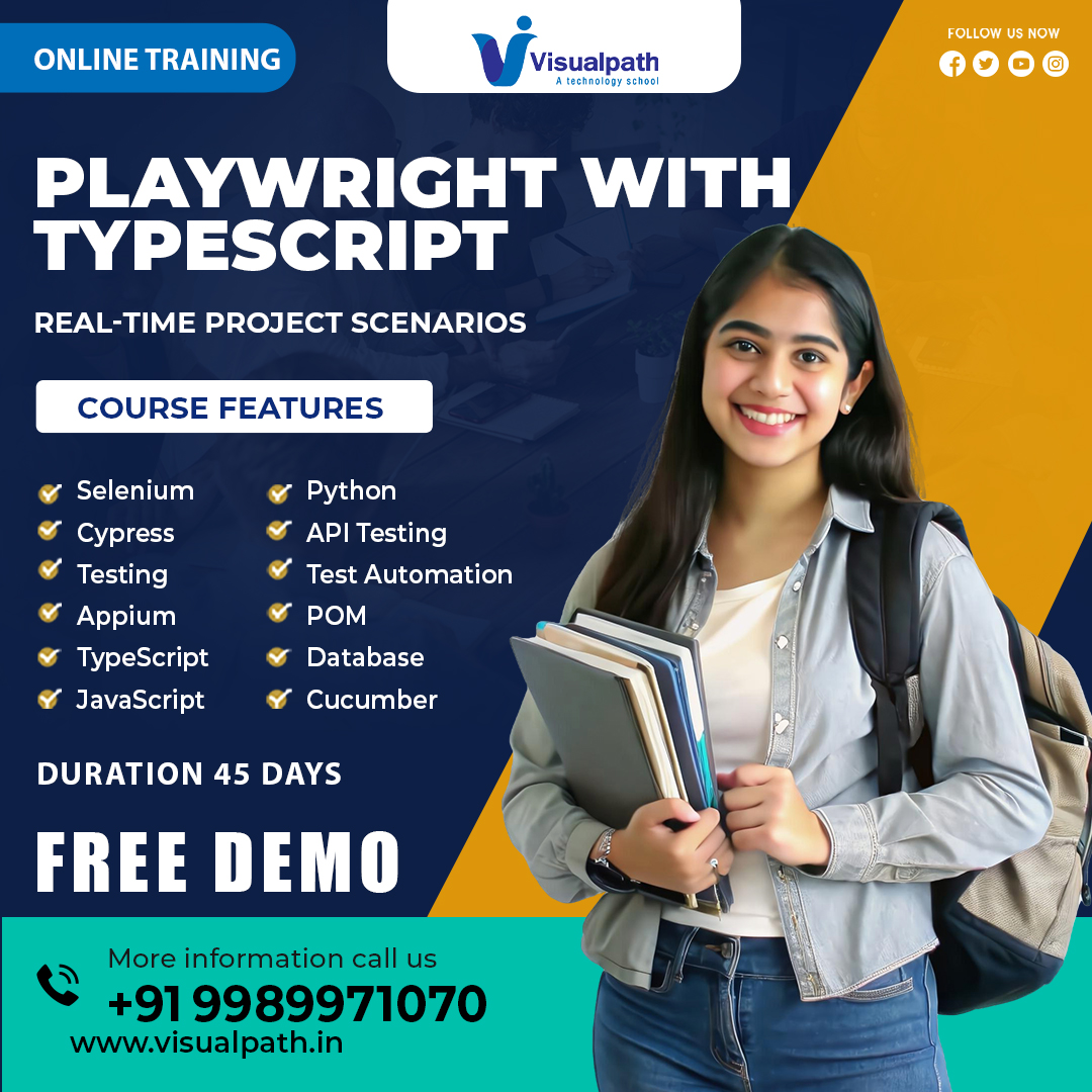 Visualpath: Advance your career with PlayWright Automation Training. Get a PlayWright Course Online from industry experts and gain hands-on experience with our interactive program. Our PlayWright Training is accessible globally, including in the USA, UK, Canada, Dubai, and Australia. To book a free demo session, please call us at +91-9989971070.