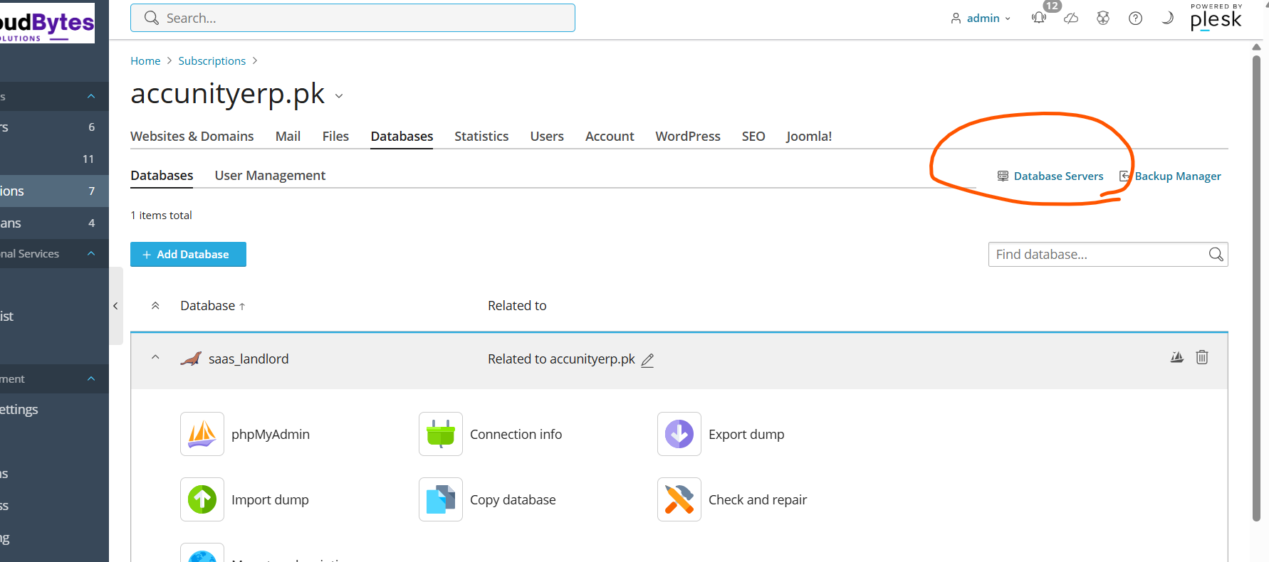 Plesk Database Server Options