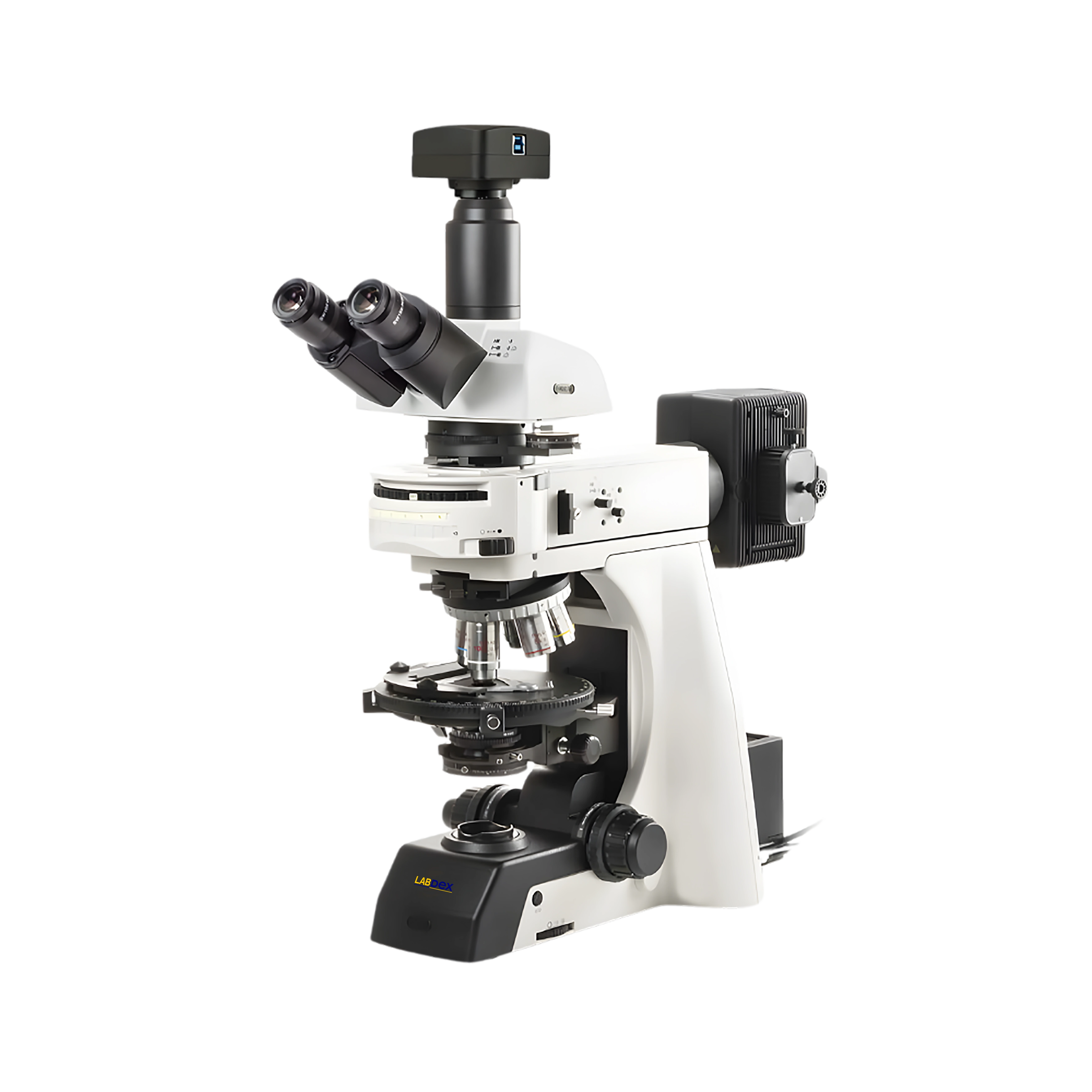 LabDex Polarizing Microscope features an enhanced infinity optical system, WF10x/22 eyepieces, strain-free polarizing objectives, a 3-position beamsplitter, an Abbe NA1.25 condenser, and reflected/transmitted illumination for geology, mineralogy, petrography, forensics & metallurgy imaging.