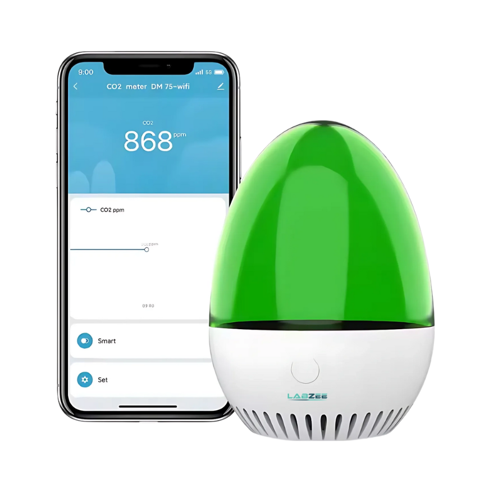 Labzee Portable CO₂ Meter uses a high-precision NDIR sensor to monitor CO₂ levels from 400 to 5000 ppm in real time. A color-changing light indicator provides quick visual alerts, while Wi-Fi connectivity enables remote monitoring via smartphone. Compact and reliable, it ensures healthier indoor environments.