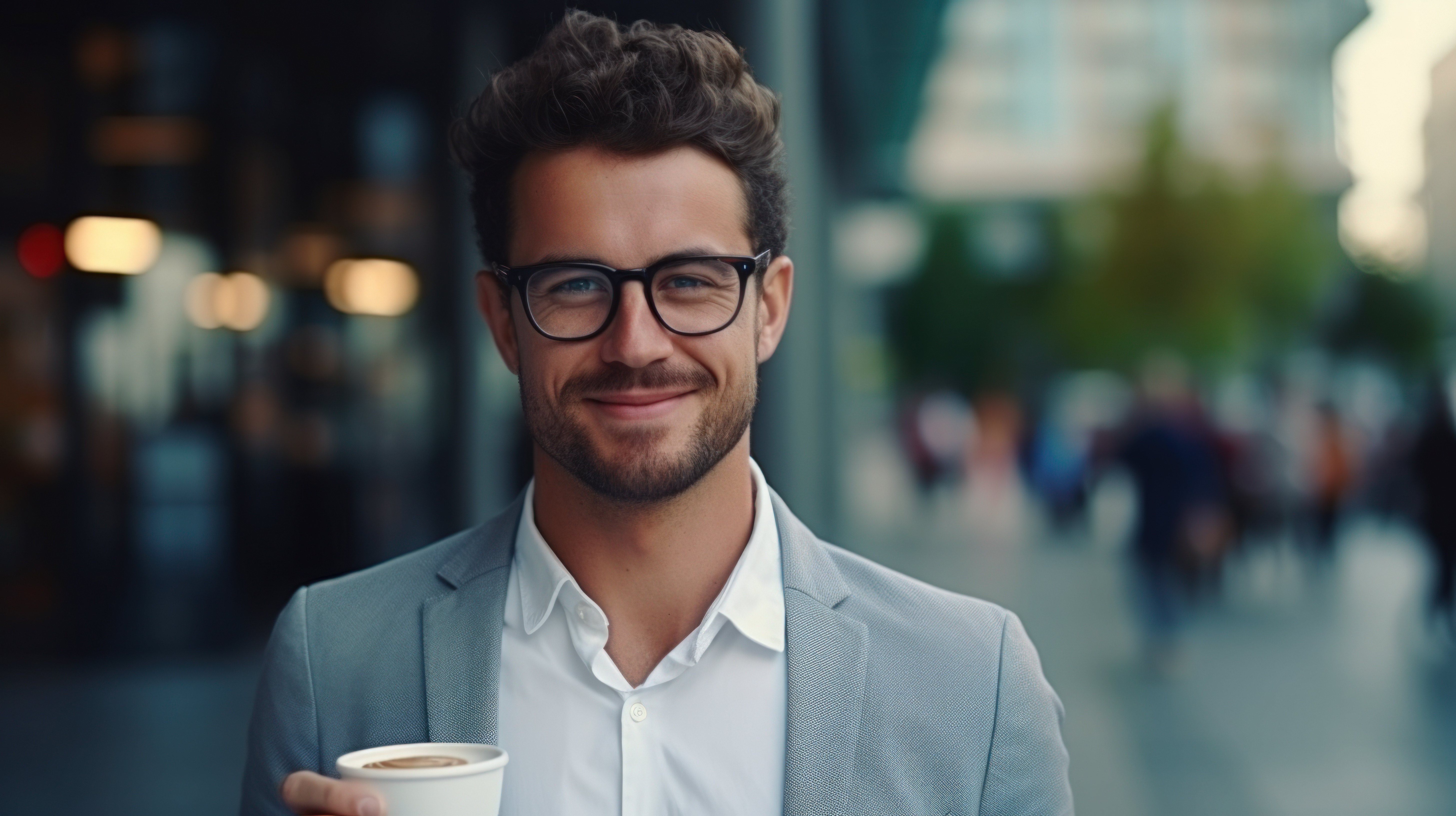 Portrait coffee and man in the city business and confident guy with startup success career and forma