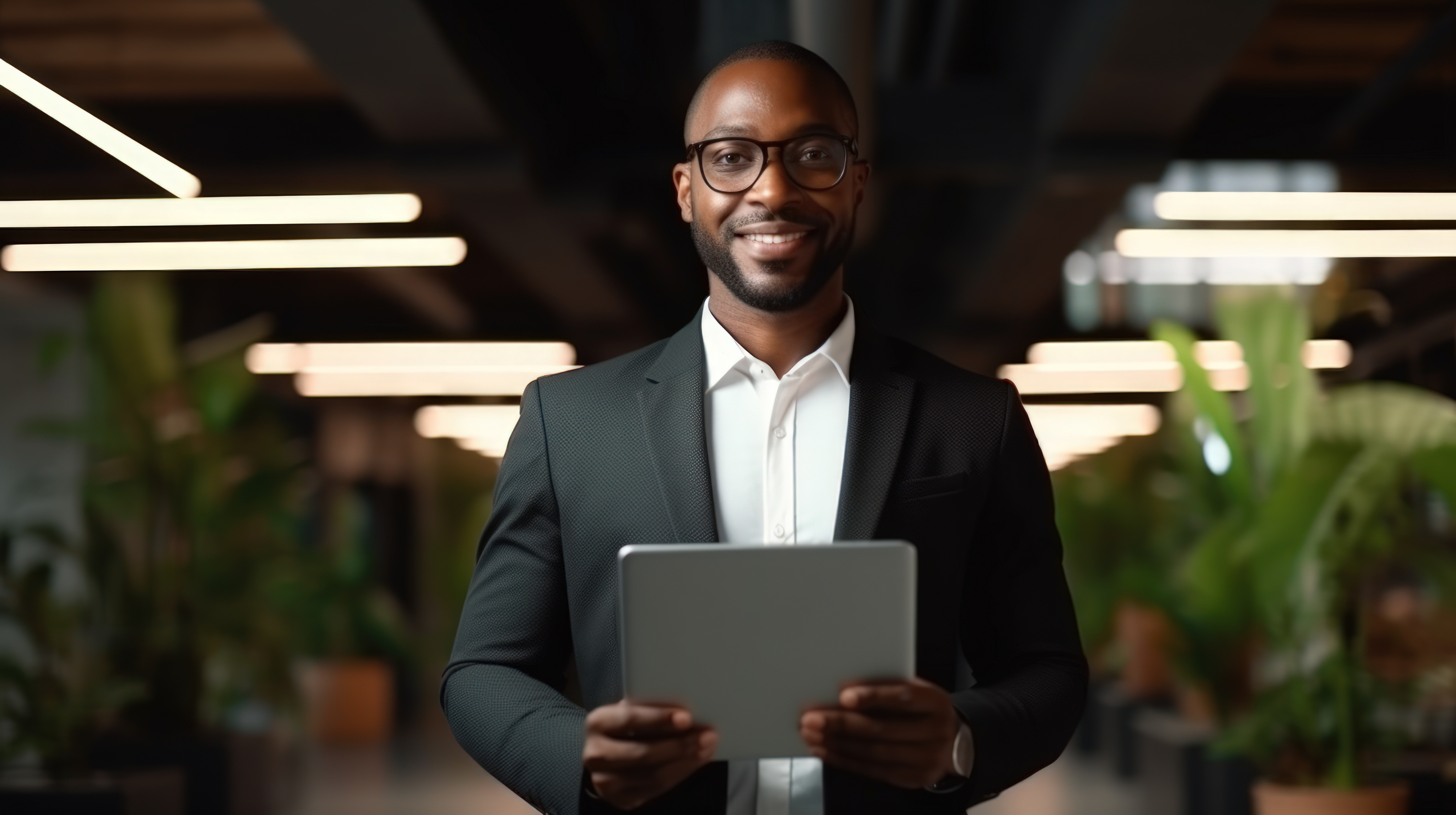 Portrait digital tablet and black man in office happy smile and empowered ambition and mindset Face