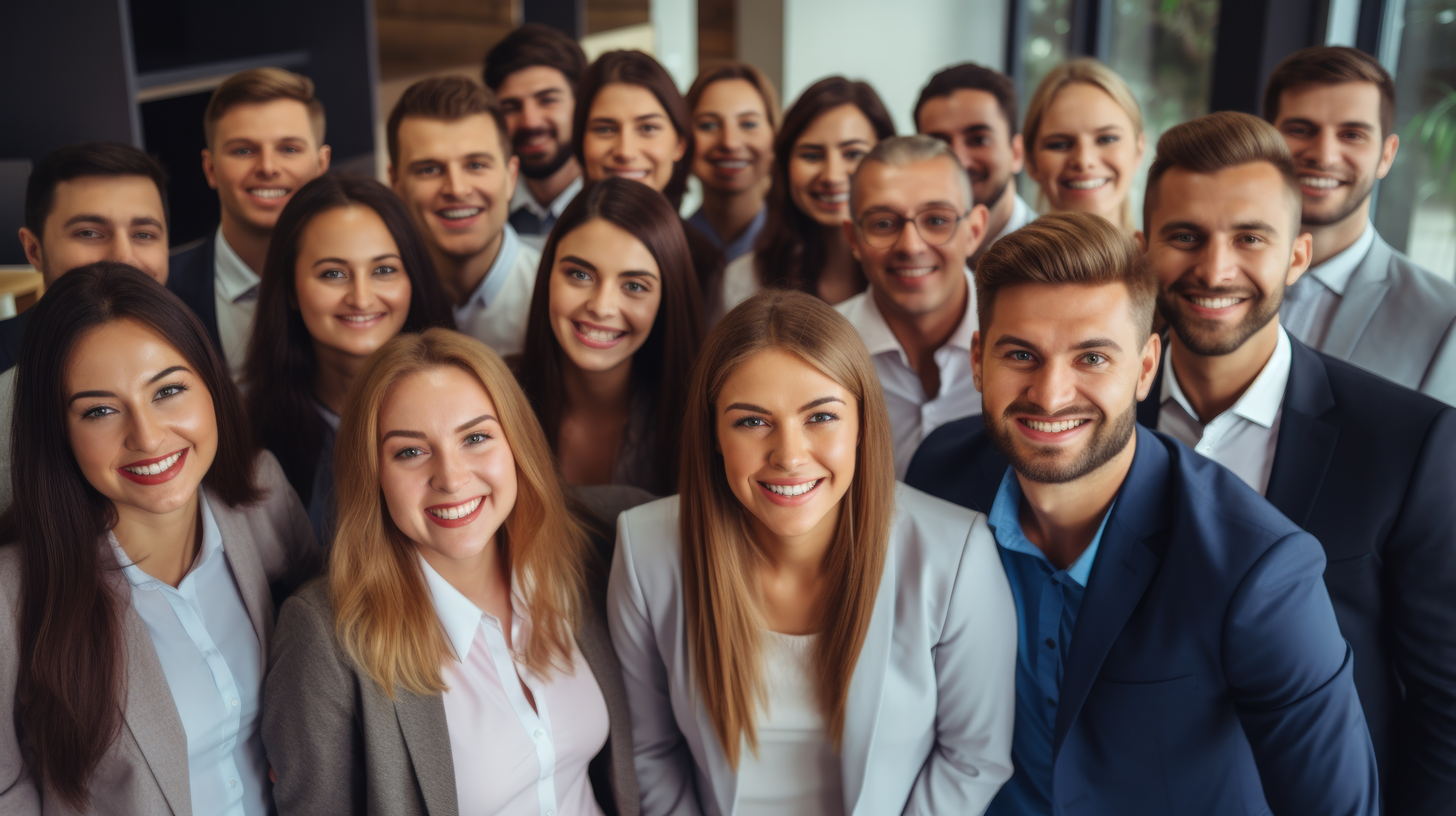 Portrait group and business people with a smile hug and collaboration with development office and st