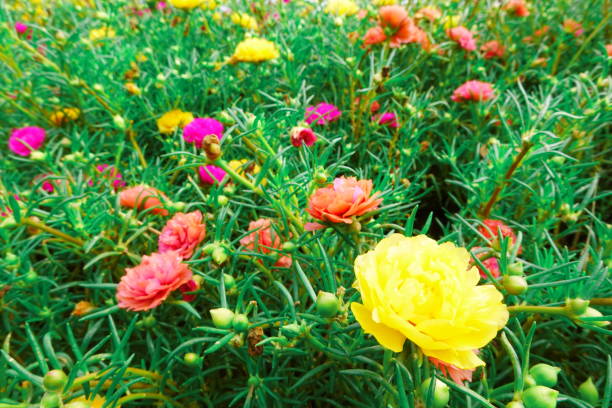 Portulaca grandiflora moss rose vintage film floral blooms