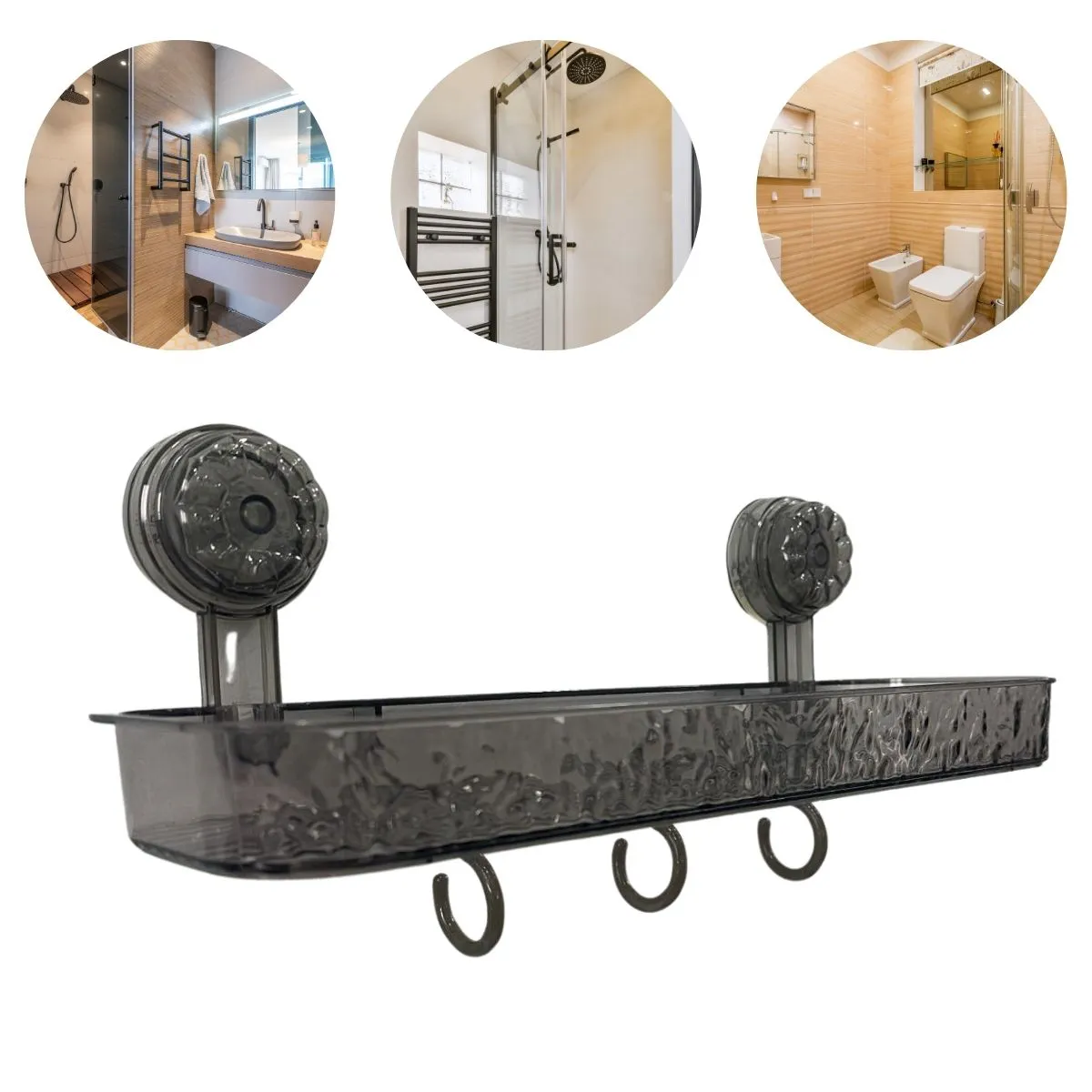 Prateleira com ventosa e padrão glaciar, removível, retangular e multifuncional, cinza 18