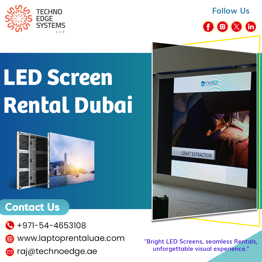 Make your event stand out with LED Screen Rental Dubai from Techno Edge Systems LLC. We offer high-quality LED screens for events, exhibitions, and conferences in Dubai. Get clear visuals and vibrant displays at affordable prices. Contact us at +971-54-4653108 for the best LED Touch Screens for Rent in Dubai. Visit us - https://www.laptoprentaluae.com/touch-screen-rental-dubai/