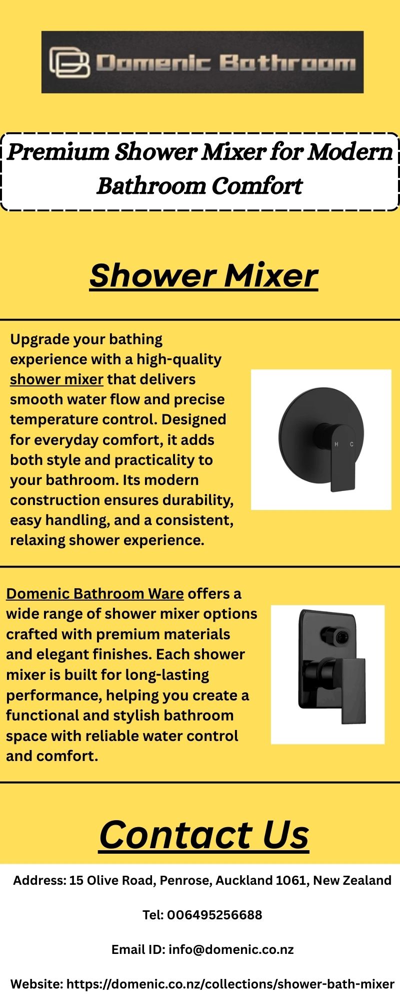 Enhance your shower experience with a reliable shower mixer designed for smooth water flow and easy temperature control. Built for daily use and modern style, it adds comfort and elegance. Domenic Bathroom Ware offers premium shower mixer designs that deliver durability and long-lasting performance.