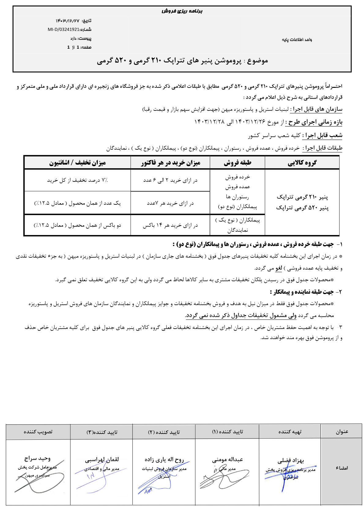 پروموشن پنیر های تتراپک 210 گرمی و 520 گرمی اسفند 1