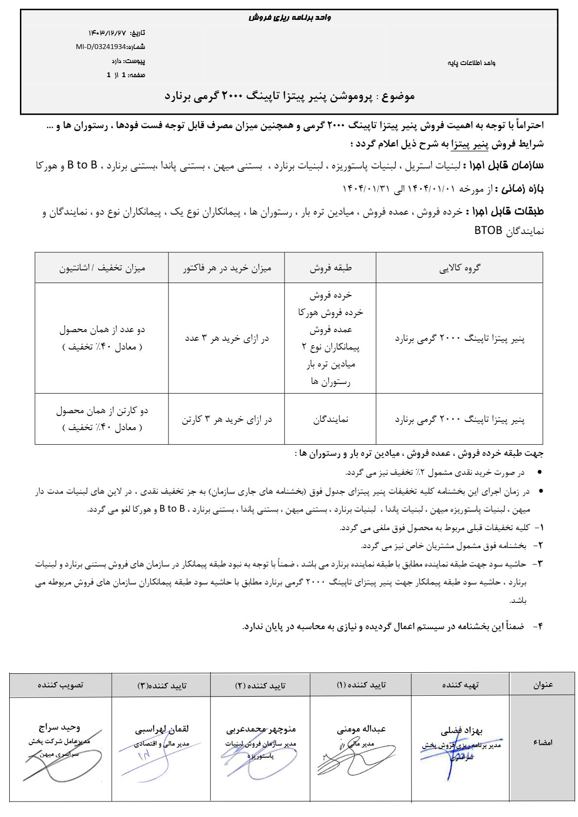 پروموشن پنیر پیتزا تاپینگ 2000 گرمی برنارد فروردین1404 1