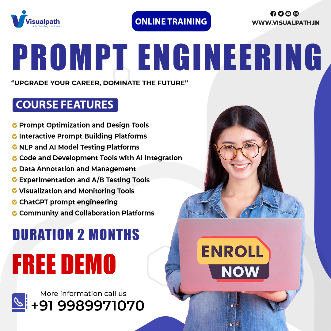 Learn Prompt Engineering Course expert-led online training courses, including live projects and certification. Join the Prompt Engineering Training offered by Visualpath. We also offer Prompt Engineering Ai Course Online to individuals globally, including in the USA and UK. Register for a free demo. Call +91-9989971070