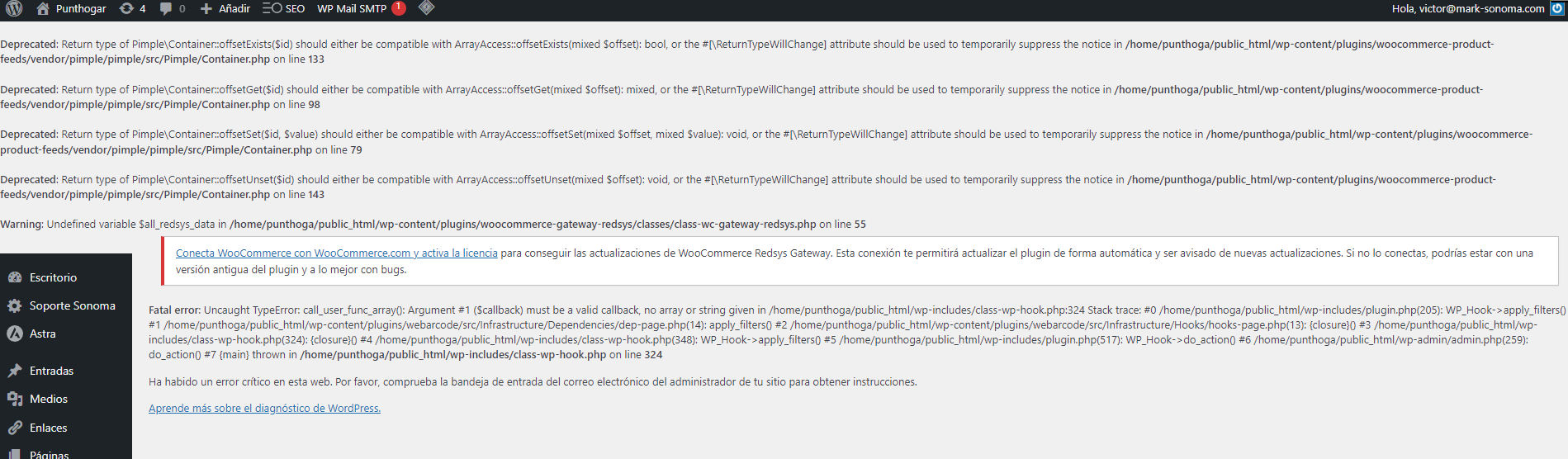 Some errors have occured and the system couldn't process your request.
