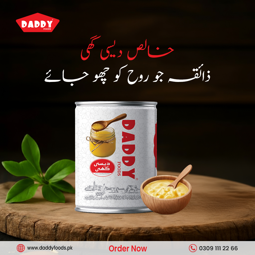 100% Pure Desi Ghee – natural, rich in flavor, and prepared using traditional techniques for authentic taste and healthy cooking. order now from www.daddyfoods.pk