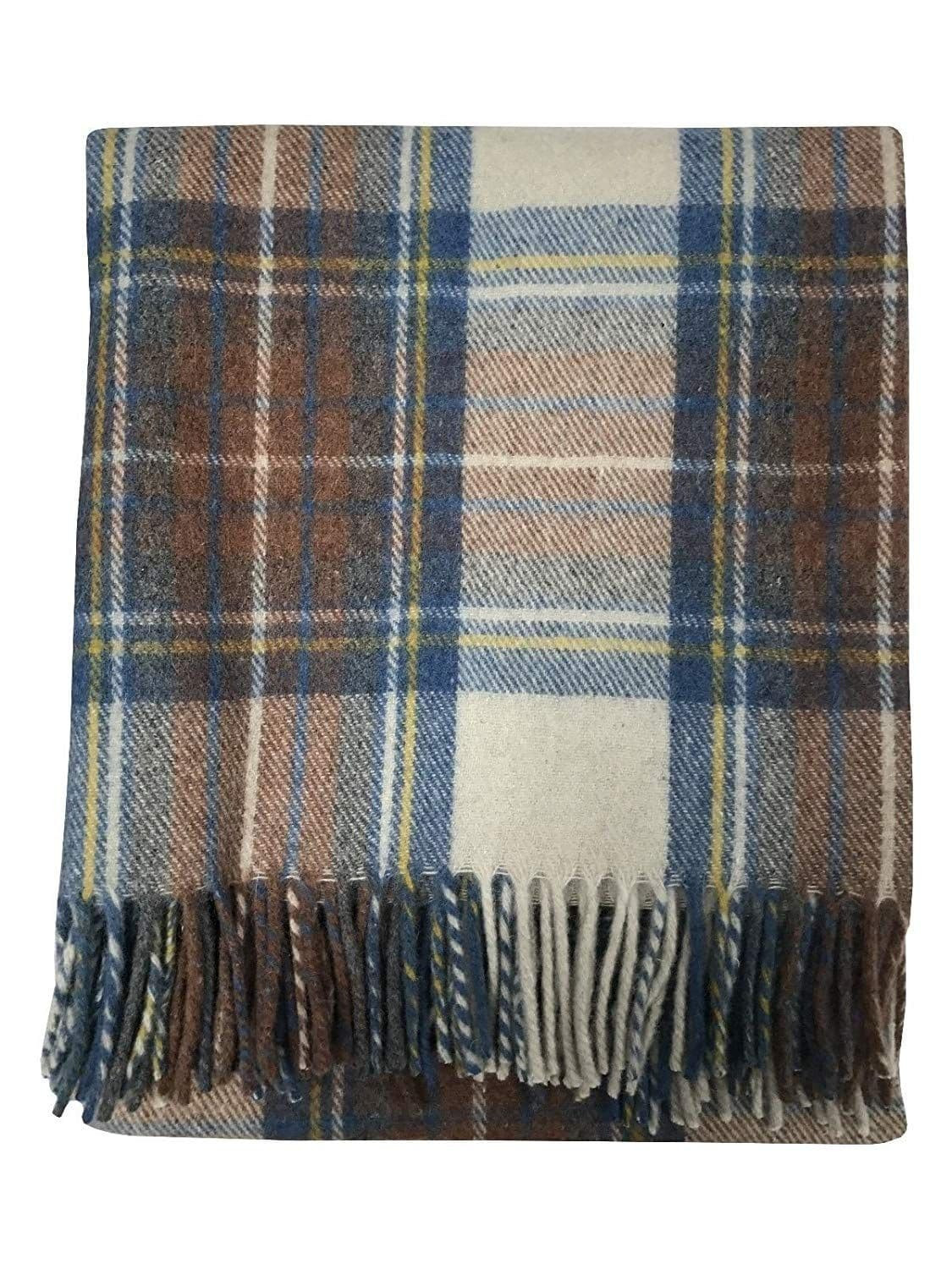 pure wool tartan travel blanket stewart muted blue 2500 p