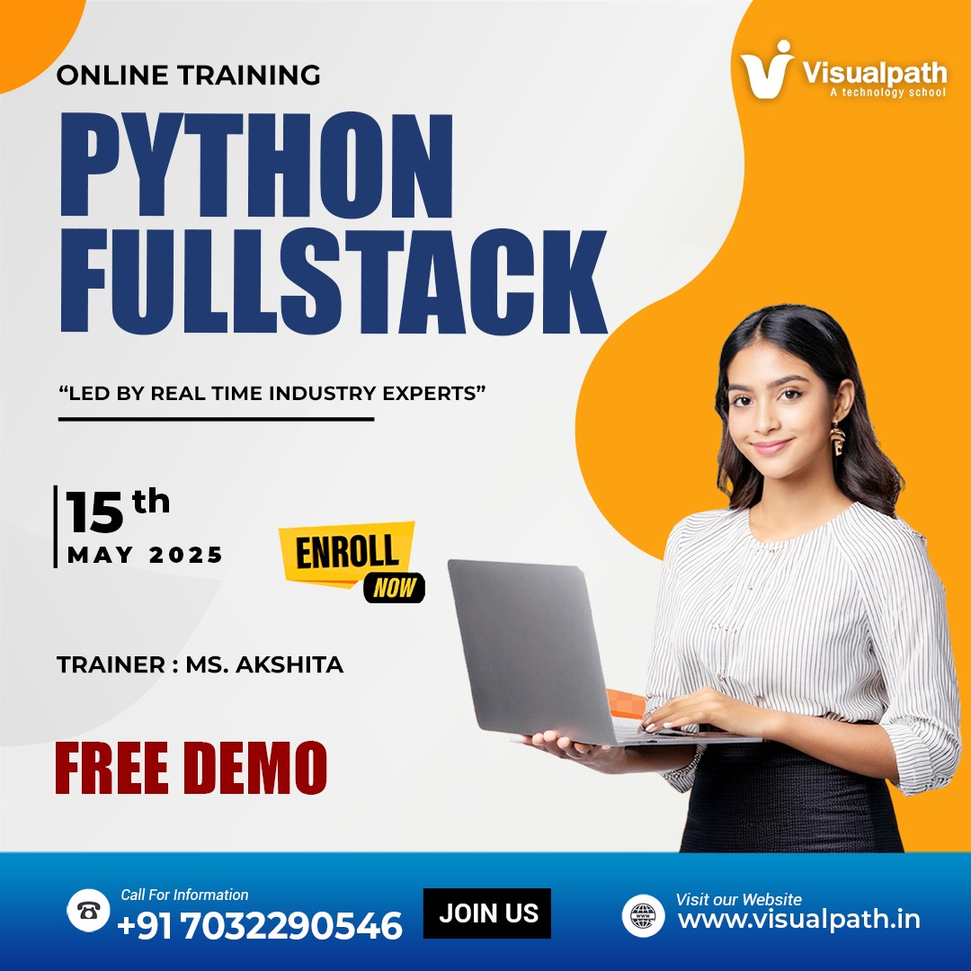 Upcoming Python Full Stack Free Demo On online Learn end-to-end development skills. Don’t miss this opportunity! 📅Demo on: 15/05/2025 @9AM IST 👉Attend Online FREE Demo On (Python Full Stack) 🌟Trainer Name: Akshita 📞Contact us: +91-7032290546 💬WhatsApp: https://wa.me/c/917032290546 🌐Visit: https://www.visualpath.in/python-fullstack-development-course-online.html