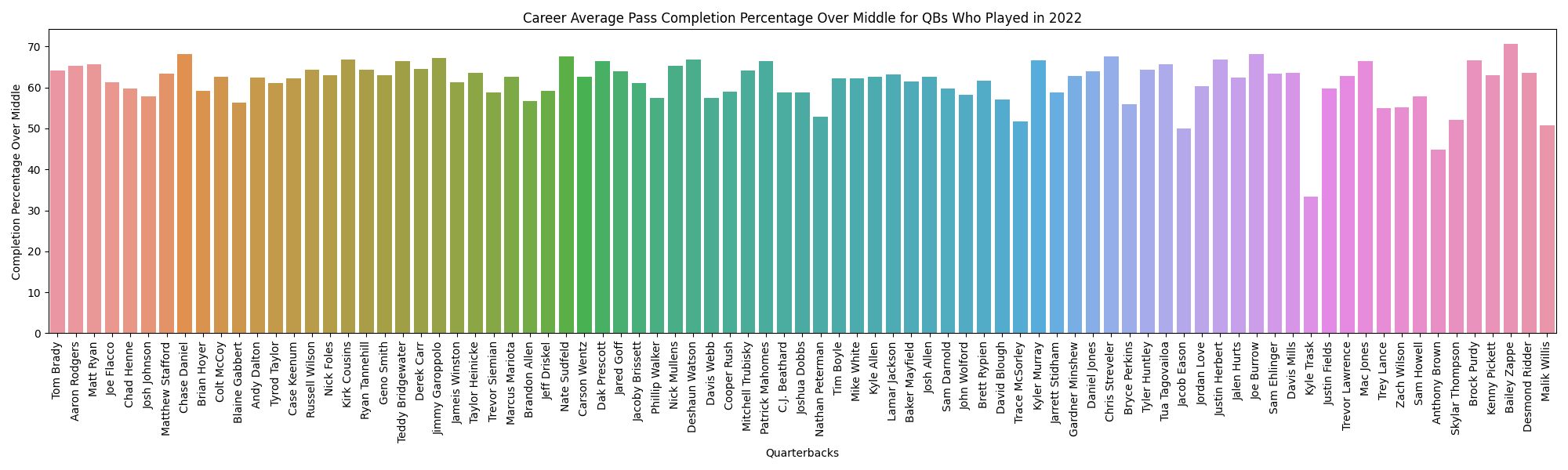 qbs 2022 pass completion over middle