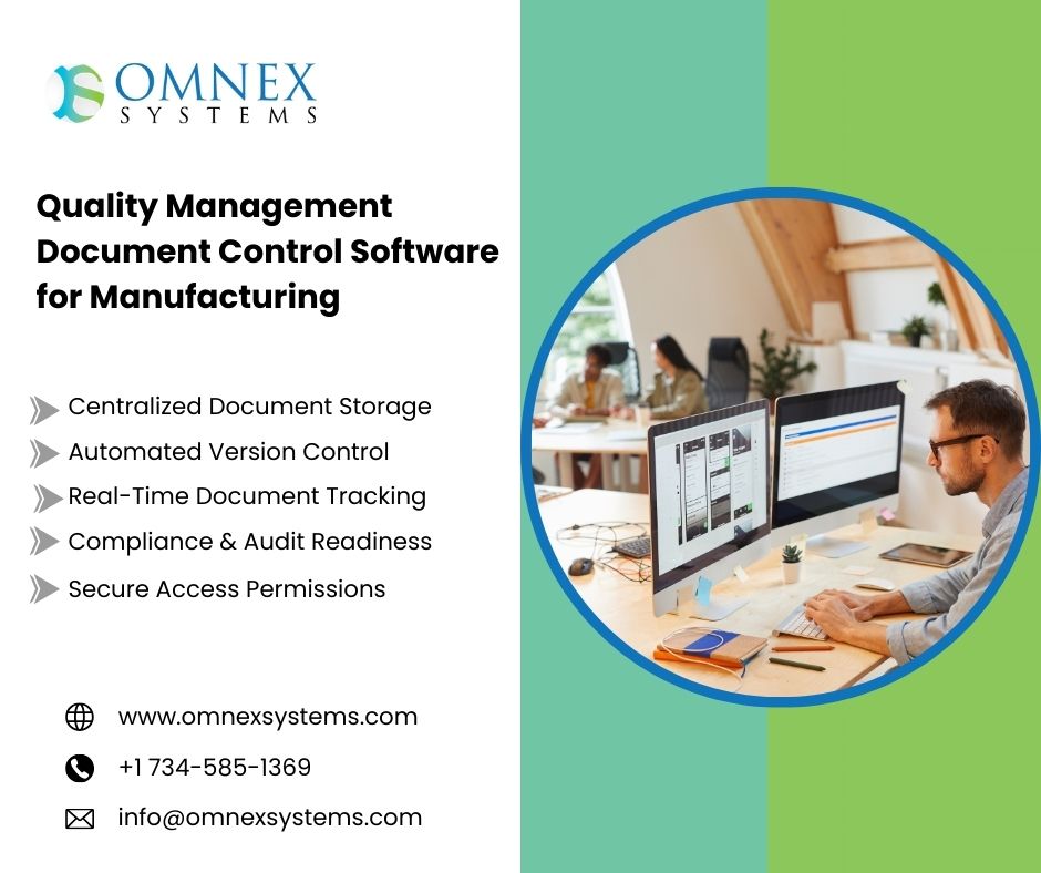 Omnex Systems offers advanced document control software for manufacturing designed to streamline compliance, improve productivity, and maintain complete accuracy across production environments. With centralized access, controlled workflows, and automated version tracking, manufacturers can ensure that every team works with the latest approved documents. The software supports quality standards, reduces manual errors, and enhances traceability across processes. Omnex Systems enables real time collaboration, secure storage, and seamless document updates, helping organizations strengthen operational efficiency. By adopting powerful document control software for manufacturing, companies can achieve consistent quality, meet regulatory requirements, and build a more reliable production ecosystem.