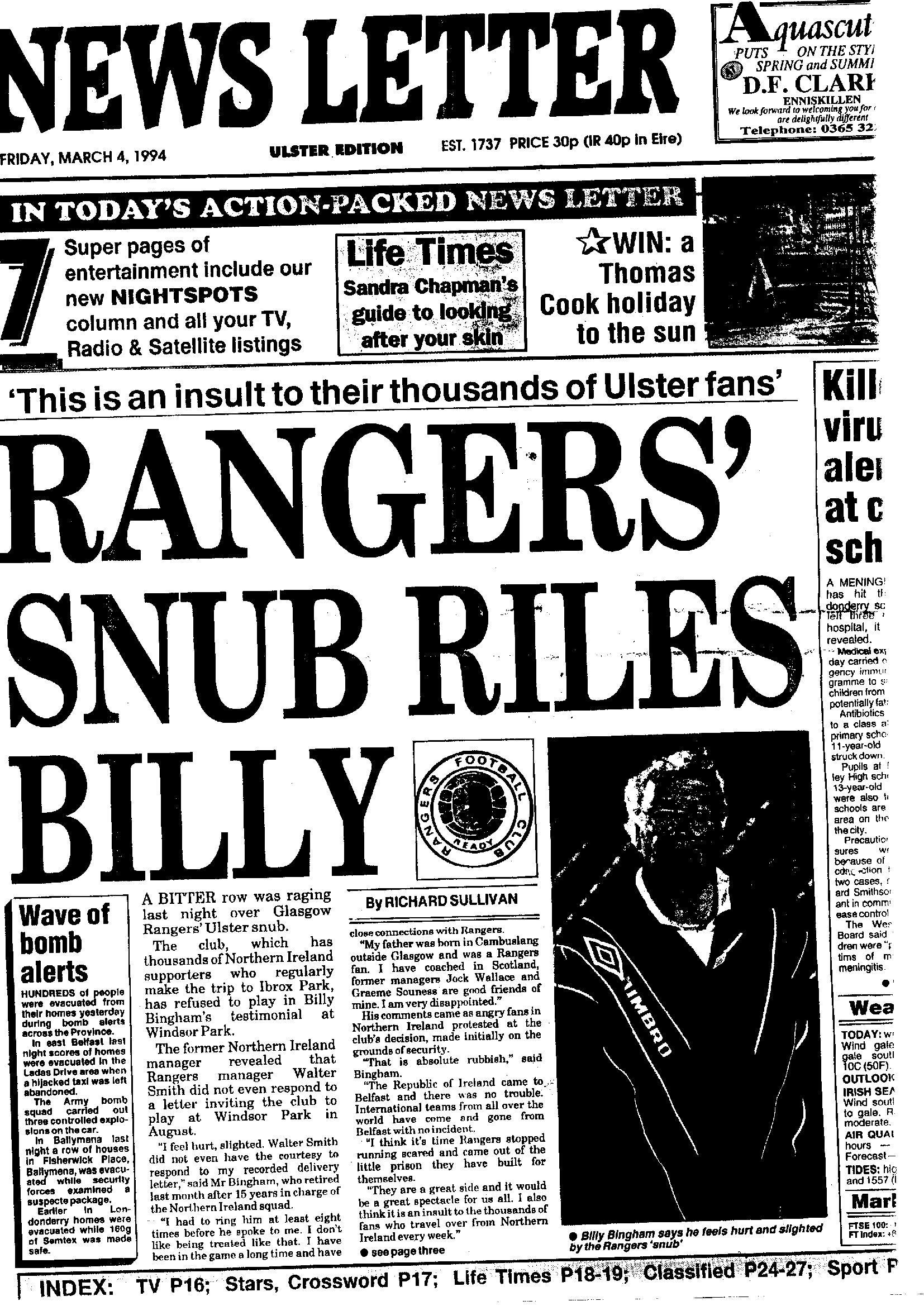 Rangers no to Billy Bingham testimonial 0002