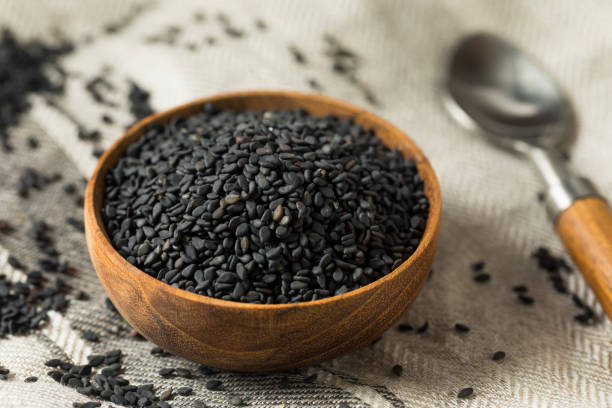 Raw Dry Organic Black Sesame Seeds in a Bowl