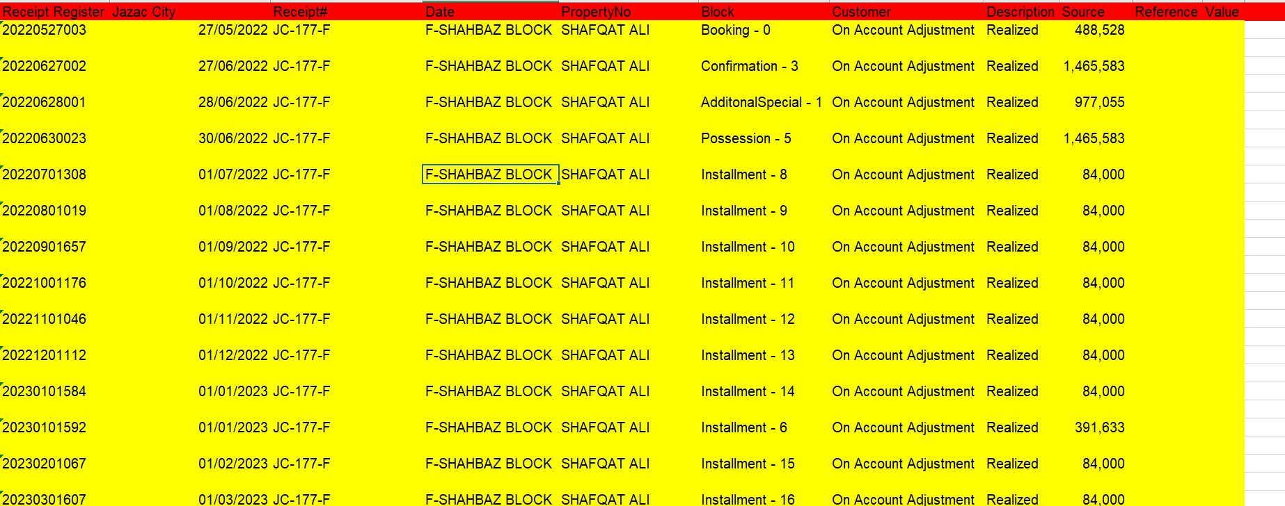 RECEIPT REGISTER REPORT EXCEL HEADING WRONG