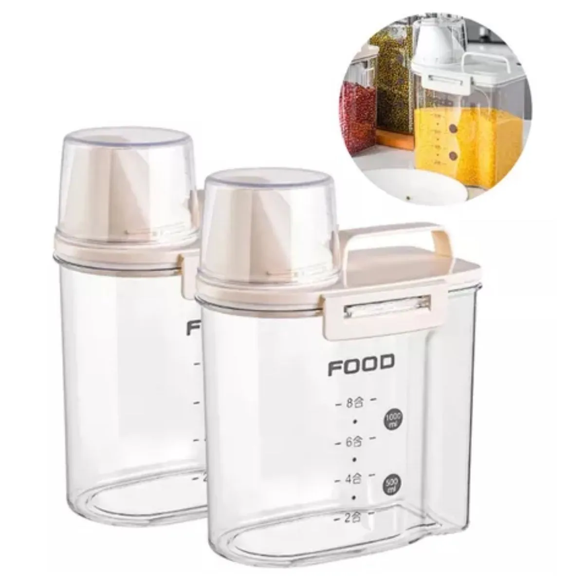 Recipiente De Armazenamento De Alimentos Hermético Com Copo De medição E Alça Pote De Cereais 25