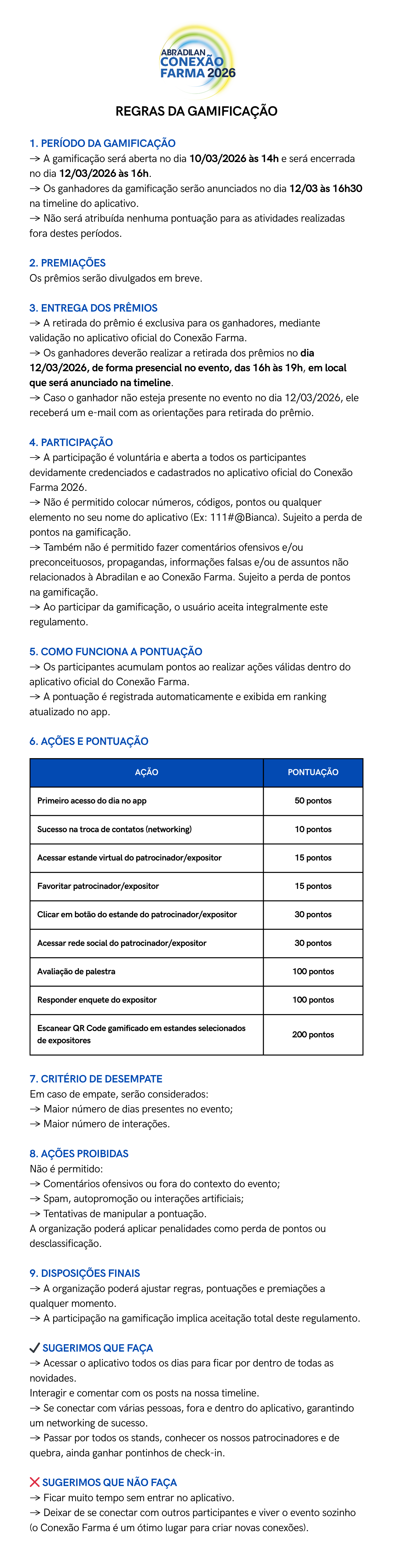 REGRAS DA GAMIFICAÇÃO 1. PERÍODO DA GAMIFICAÇÃO → A gamificação será aberta no dia 10032026