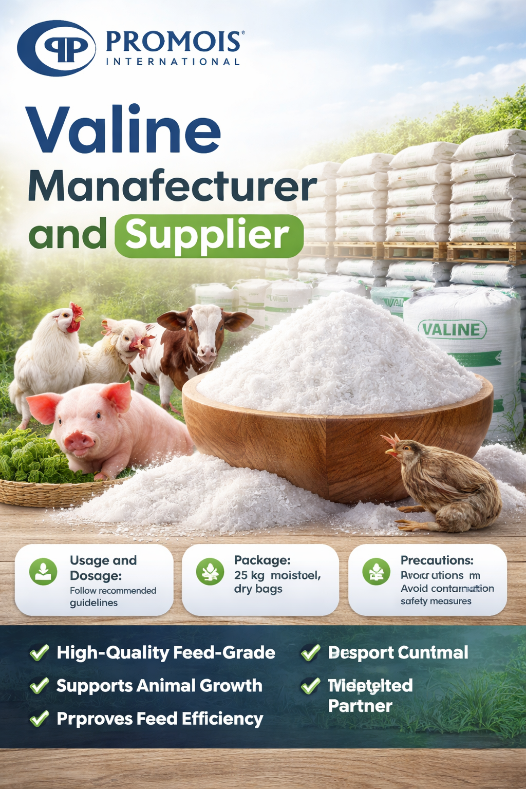 Reliable-valine-manufacturer-supplier-livestock-growth Enhance animal growth and feed efficiency with premium-grade valine designed for modern livestock nutrition. As a trusted Valine Manufacturer and supplier, we deliver high-purity, highly bioavailable valine produced through advanced fermentation processes. Ideal for poultry, swine, cattle, and aquaculture, it supports muscle development, boosts immunity, and improves overall performance. Usage and Dosage: As per feed formulation. Package: 25 kg moisture-proof bags. Storage: Cool, dry place. Precautions: Use recommended levels only. High-Quality Valine Manufacturer and supplier ensures consistent results. Conclusion: Choose a reliable Valine Manufacturer and supplier for better productivity and animal health. Contact details here:- Page link:- https://promoisinternational.com/l-valine Phone number:- +919956678737 Email id :- customercare@promois.ru sales@promoisinternationallt.com Facebook link:- https://www.facebook.com/promoisru/ Insta gram link:- https://www.instagram.com/promois.feedandfeed/