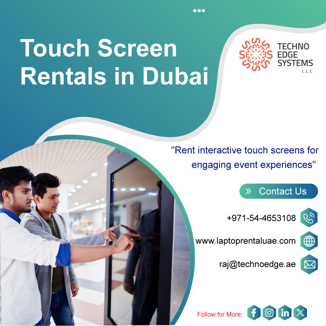 Techno Edge Systems offers the latest interactive displays to make your events, presentations, and exhibitions more engaging. Our touch screens are perfect for conferences, trade shows, and corporate meetings. Enjoy flexible rental plans, and competitive prices. Touch Screen Rentals in Dubai. Call us at 054-4653108 or visit us - https://www.laptoprentaluae.com/touch-screen-rental-dubai/