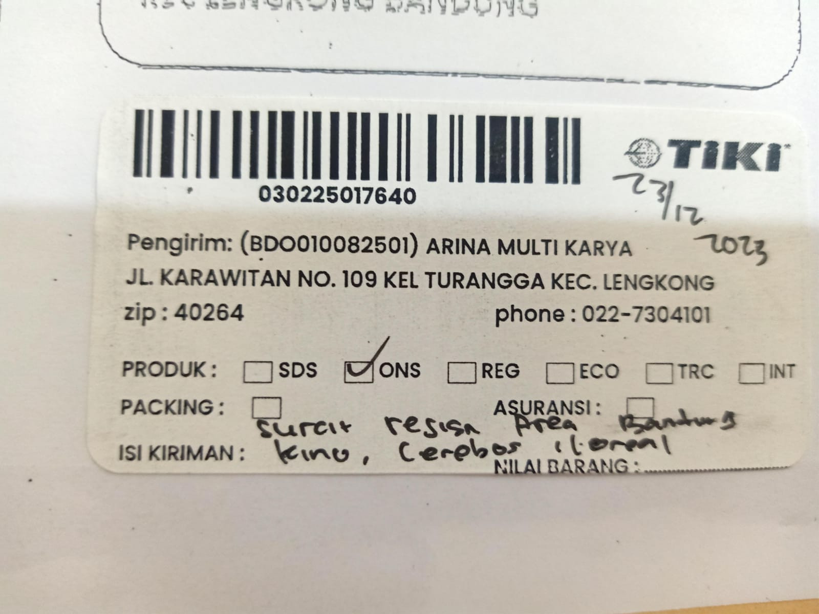 Resi 23 Desember 2023