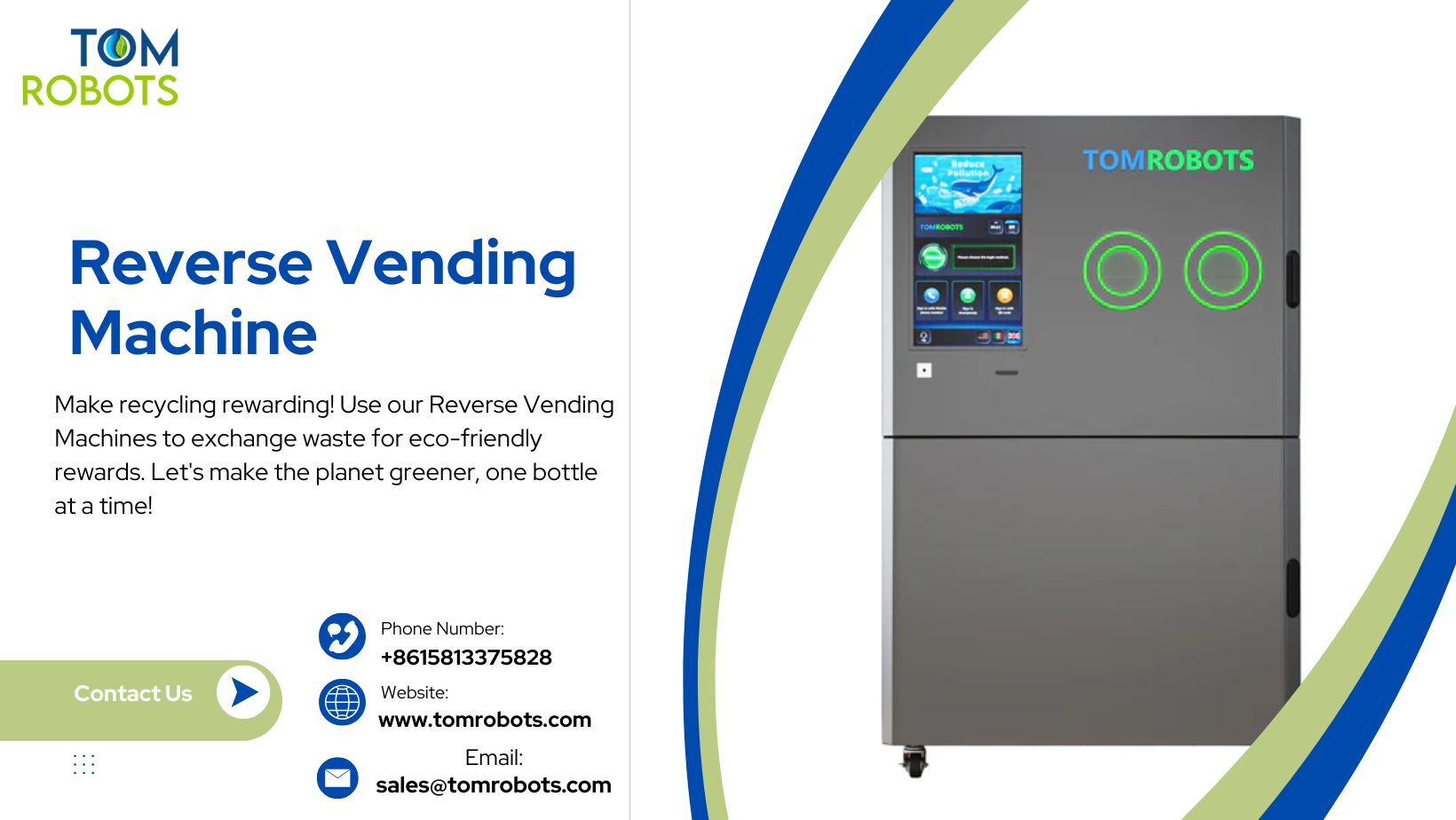 Find the future of recycling with our Reverse Vending Machine. You can easily recycle bottles and cans and get prizes for it. Help us make the world cleaner and healthier. Go to tomrobots.com to find out more.