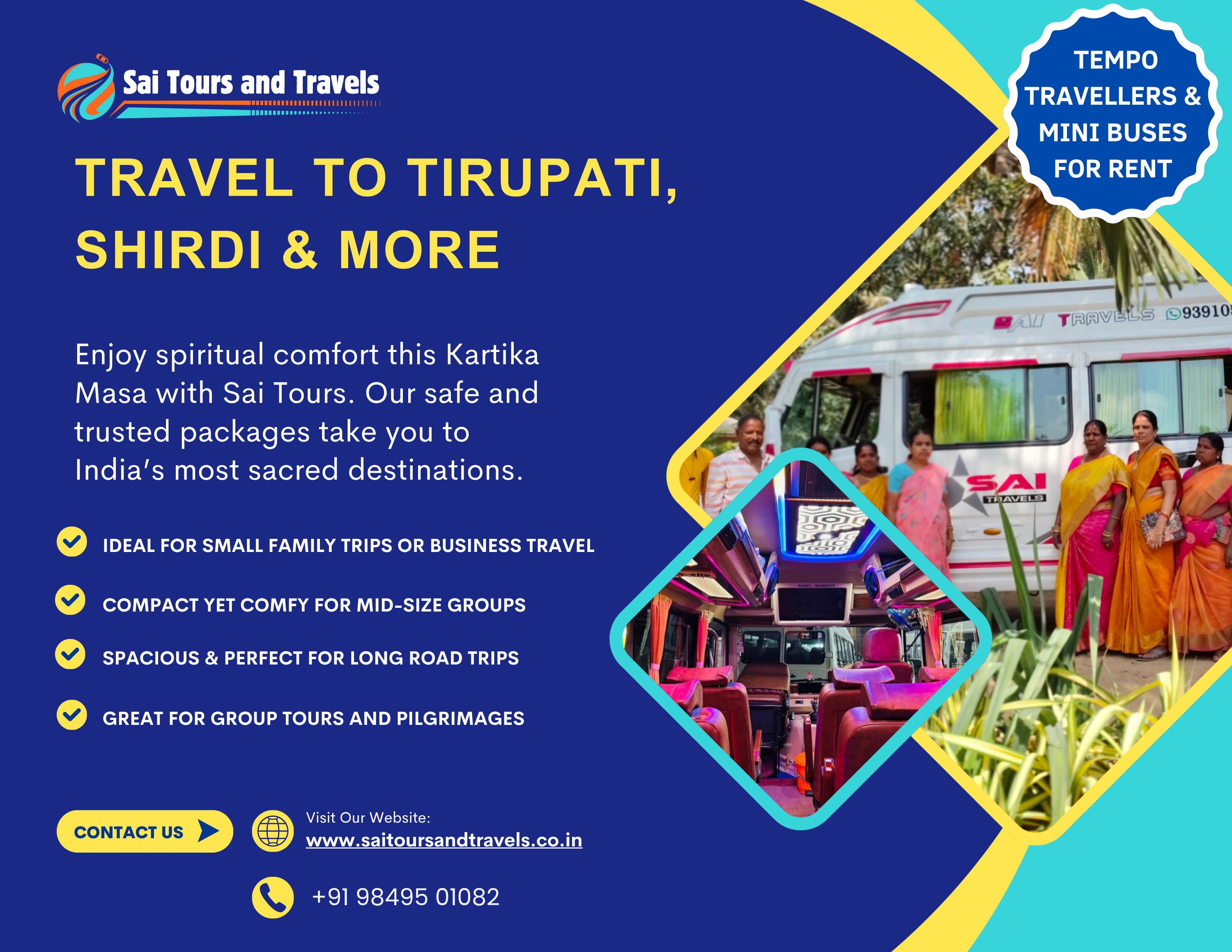 Safe travel, devotional energy and comfortable rides await book your trip now.