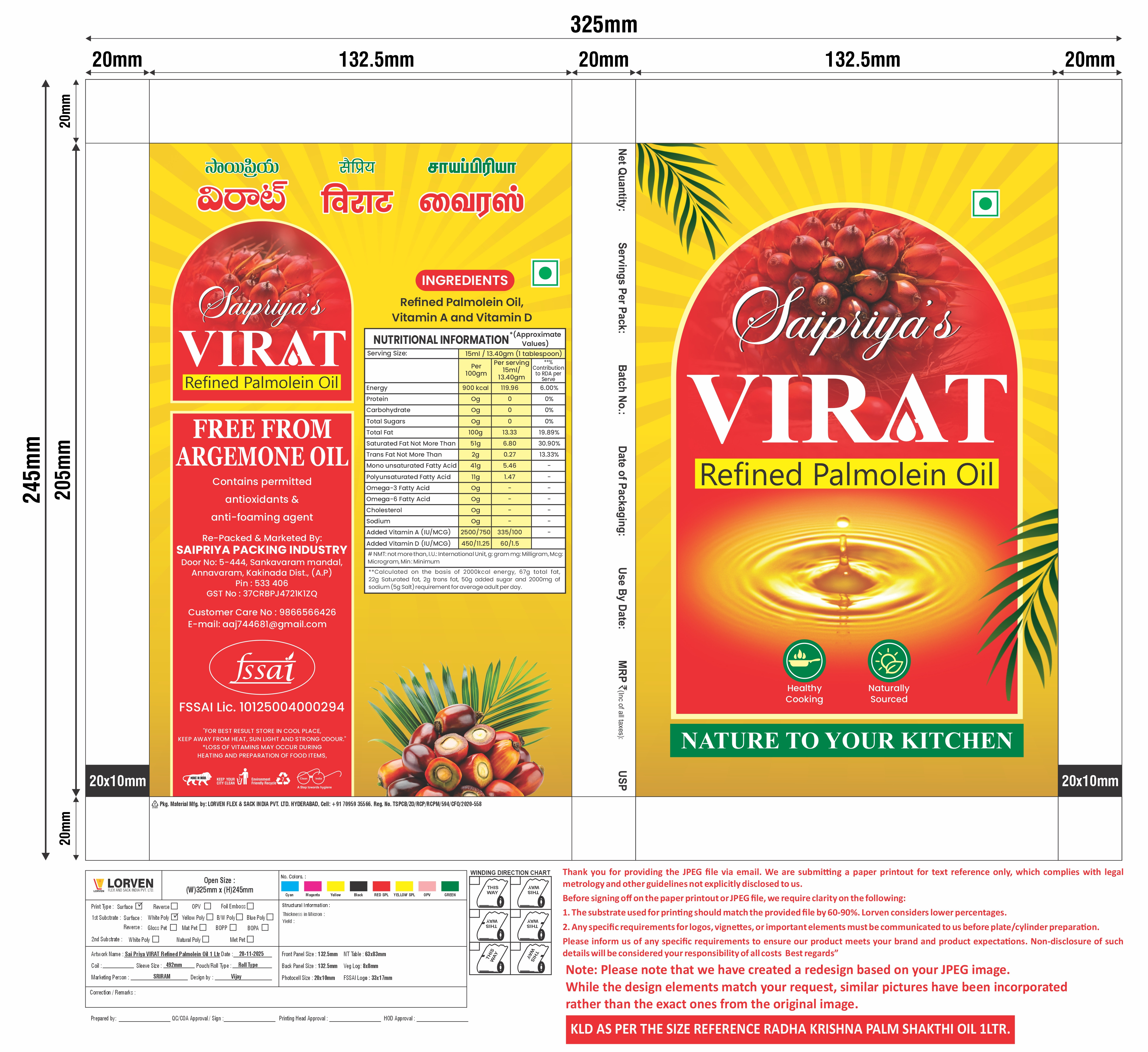 Sai Priya VIRAT Refined Palmolein Oil 1 Ltr