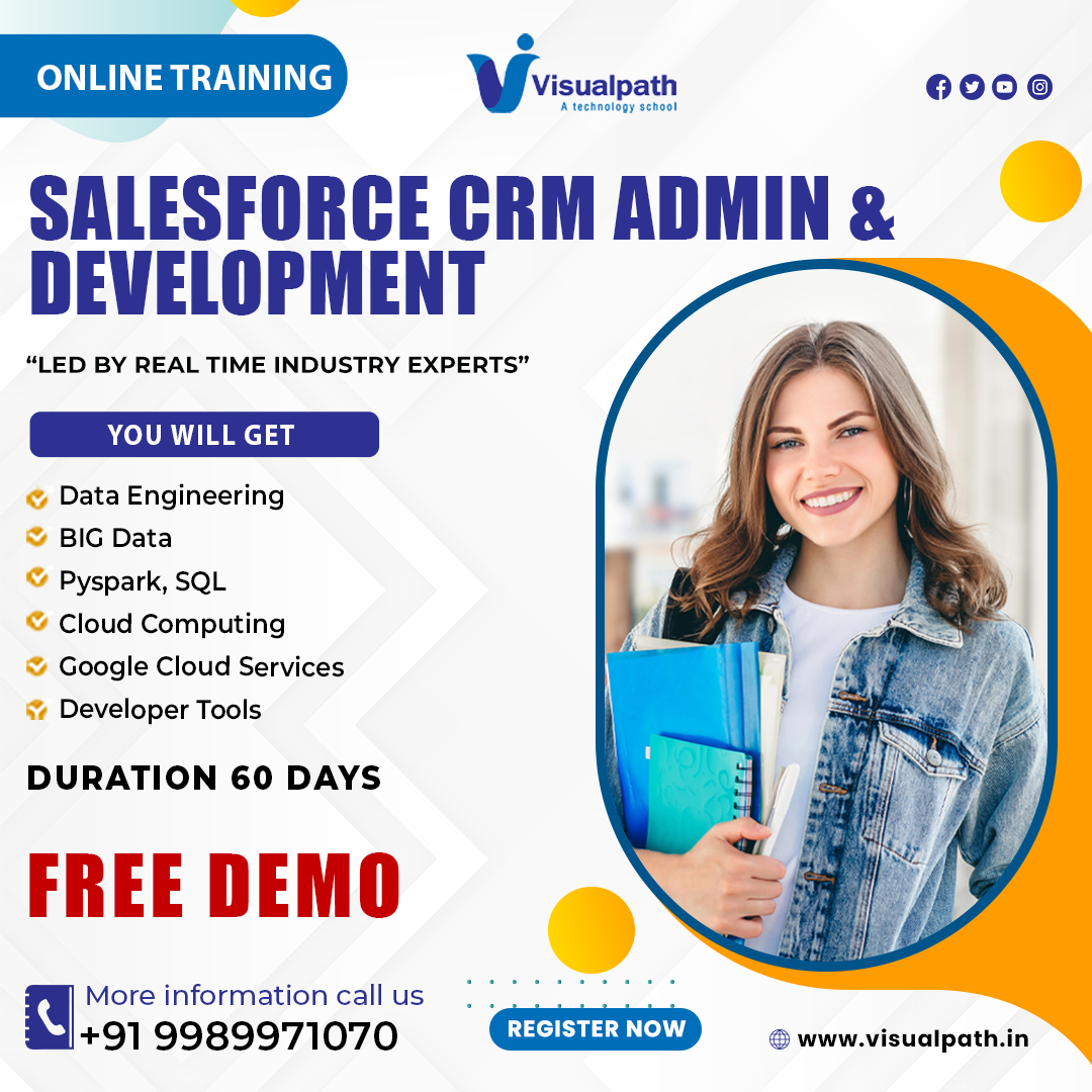 Visualpath offers SalesForce CRM Online Training for the next generation of intelligent business applications in the cloud. SalesForce CRM Admin Training from industry experts and gain hands-on experience with our interactive program. accessible globally, including in the USA, UK, Canada, Dubai, and Australia. For more info, call 91-9989971070.