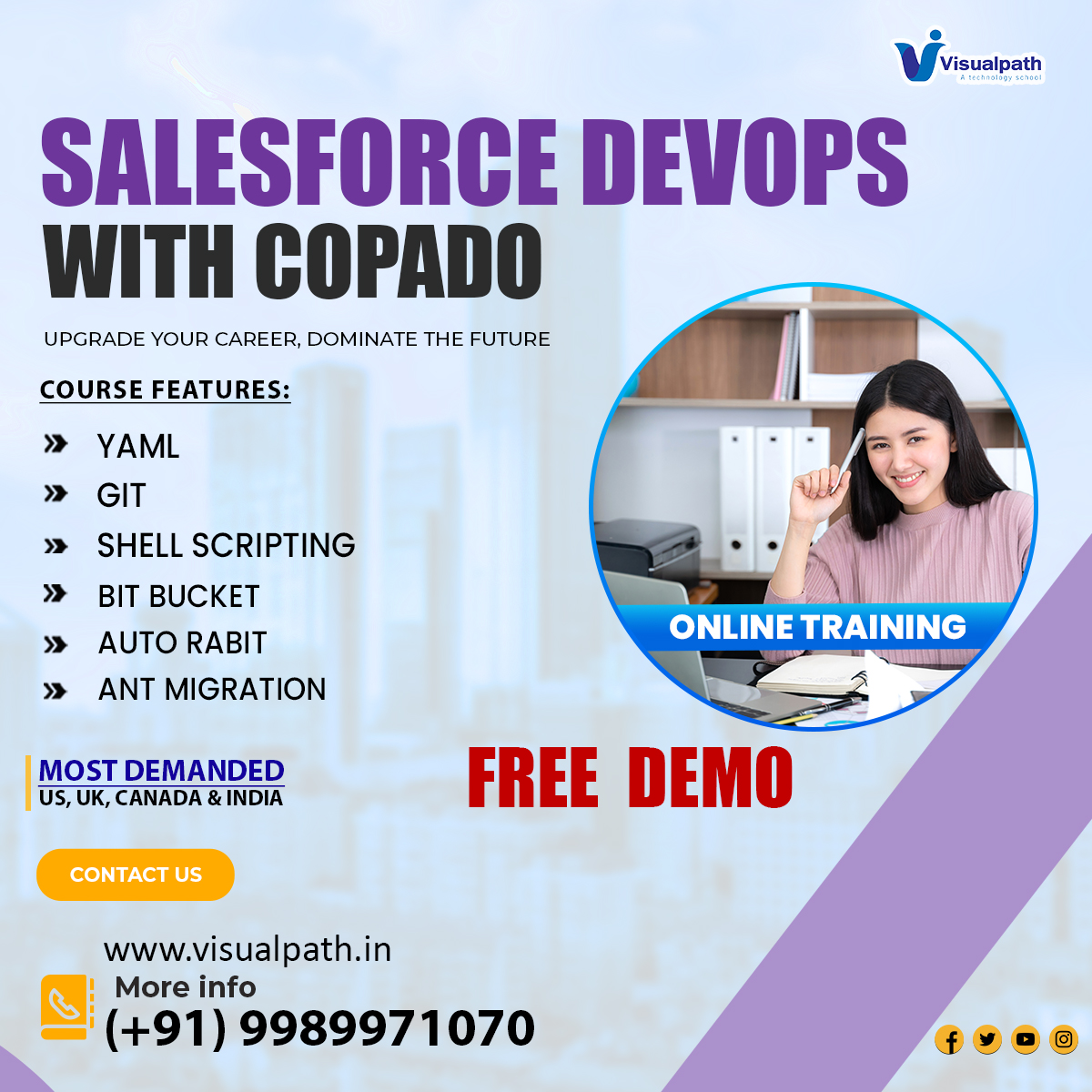 Visualpath is Providing the best Salesforce DevOps Online Training Institute. It is One Of The Top Institute in Hyderabad. providing Best Salesforce DevOps Online Training. Enhance your skills with expert-led lessons from Real Time Industry Experts. Contact at +91-9989971070