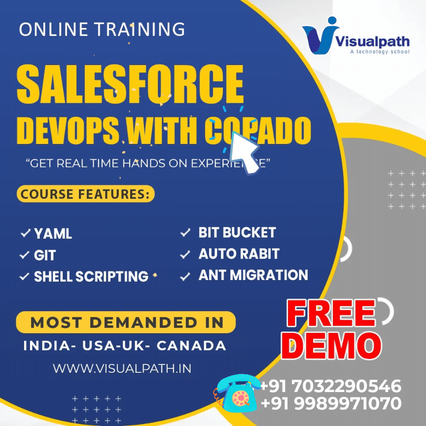 Visualpath is Providing the Salesforce DevOps Online Training Institute. It is One Of The Top Institute in Hyderabad. providing Salesforce DevOps Training. Enhance your skills with expert-led lessons from Real Time Industry Experts. Contact at +91-9989971070.