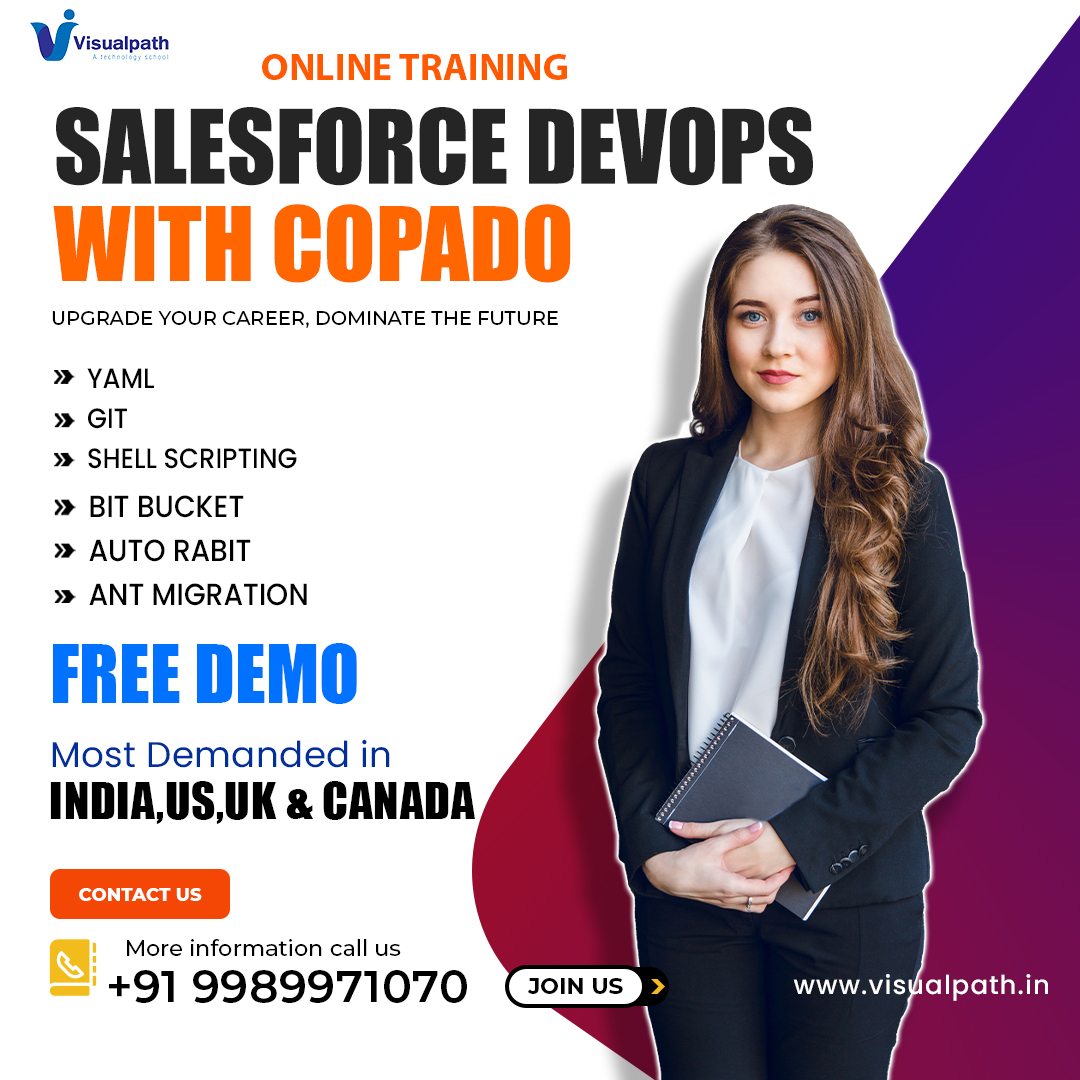 Visualpath is Providing the best Salesforce DevOps Online Training. It is One Of The Top Institute in Hyderabad. providing Best Salesforce DevOps Online Courses. Enhance your skills with expert-led lessons from Real Time Industry Experts. Contact at +91-9989971070.
