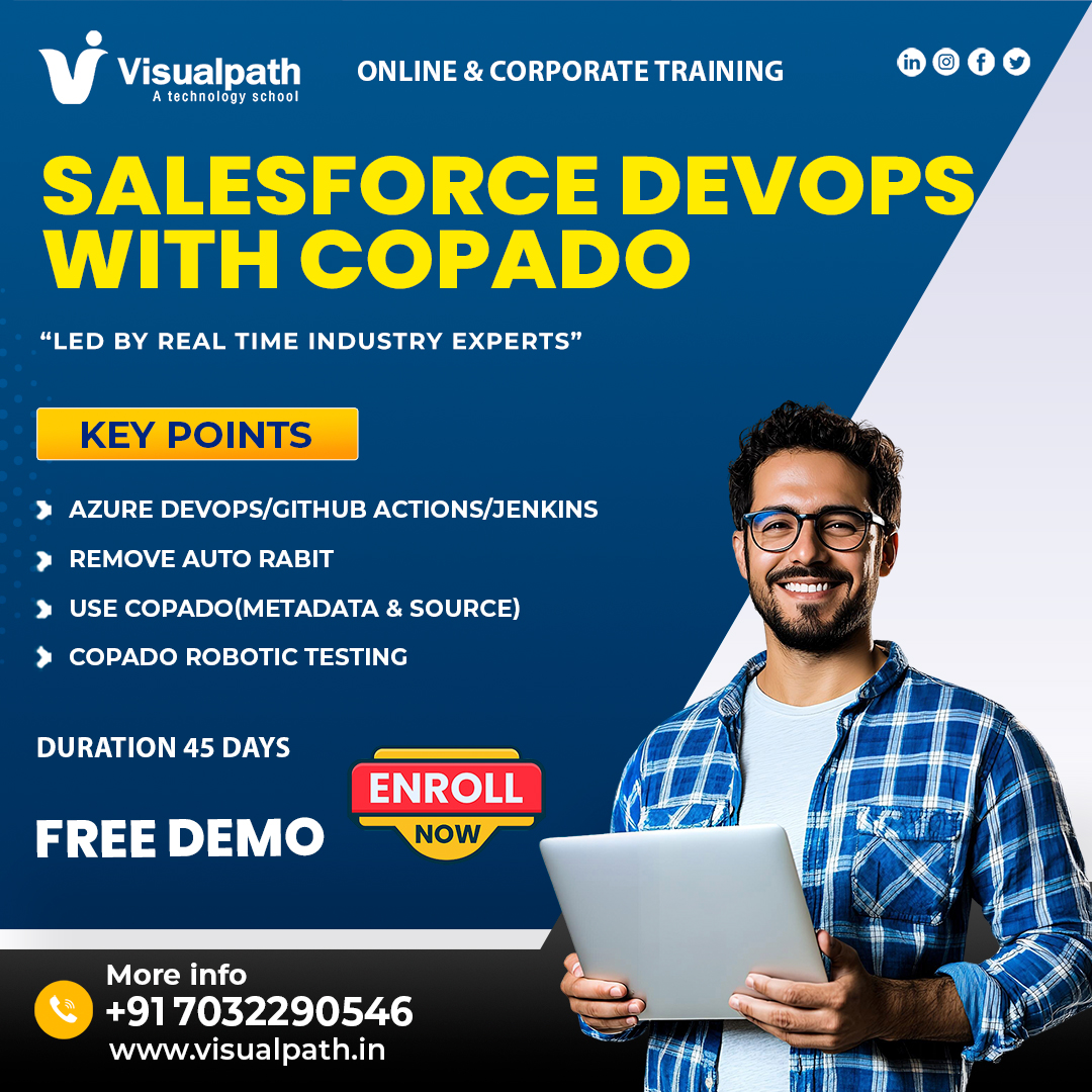 Build a successful Salesforce career with Salesforce DevOps Training in Bangalore at Visualpath! Get hands-on experience in CI/CD, version control, and automation. Join Salesforce DevOps Training to master Copado, learn from expert mentors, and gain real-time project exposure to boost your career in Salesforce DevOps. Call +91-7032290546 to book your free demo today.