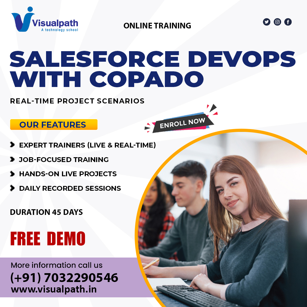 Join Visualpath for the best Salesforce DevOps Training in Hyderabad and India. Gain hands-on experience in CI/CD, Git integration, and deployment automation. This Salesforce DevOps Course by Visualpath is designed by industry experts to help you master end-to-end DevOps practices and achieve global certification success.Join now for a free demo. Call +91-7032290546 to book your free demo today