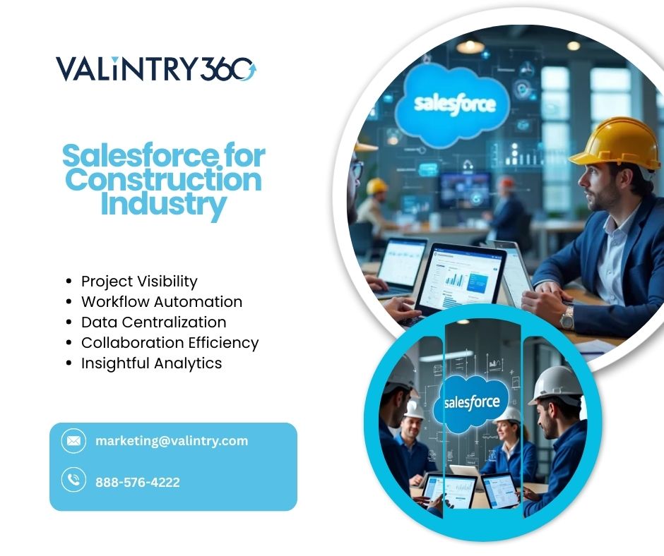 Unlock the full power of Salesforce for Construction Industry with VALiNTRY360 and transform the way your business manages projects, sales, and stakeholder collaboration. VALiNTRY360 specializes in tailoring Salesforce solutions to the unique workflows of construction firms, helping you centralize project data, automate sales and contract processes, and foster transparent communication across teams, partners, and clients — all from a unified platform designed for long‑term growth. With customized dashboards, AI‑driven insights, and secure partner portals, your teams gain real‑time visibility into budgets, schedules, and KPIs, reducing manual bottlenecks and boosting operational efficiency. Whether you’re improving lead generation, streamlining field service, or enhancing customer engagement, Salesforce configured by VALiNTRY360 empowers construction businesses to work smarter, collaborate better, and make data‑driven decisions with confidence. Ready to elevate your construction operations with an industry‑focused CRM that scales with your goals? To learn more, visit VALiNTRY360 and see how Salesforce for Construction Industry can redefine productivity and growth today!