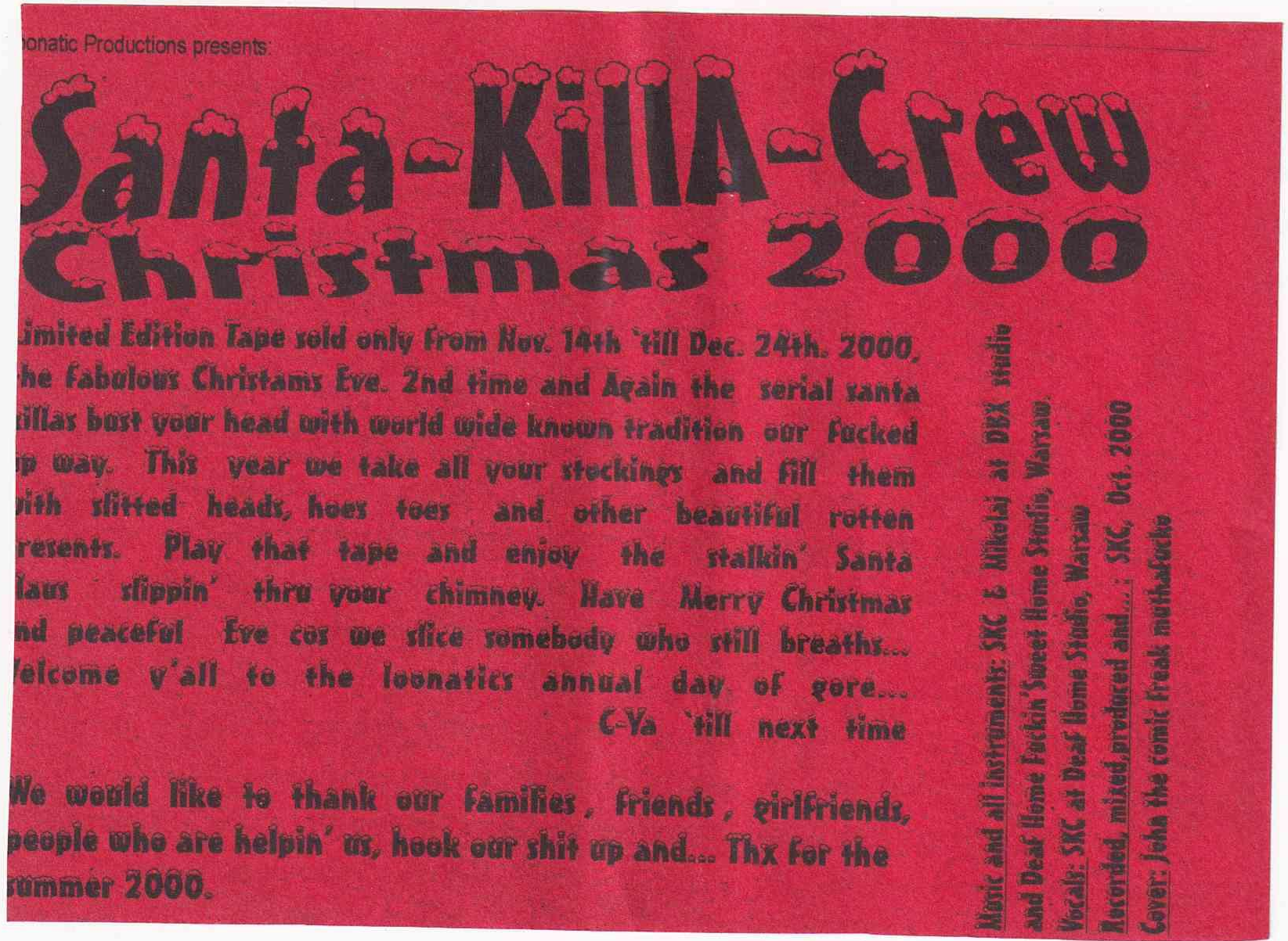 Santa Killa Crew Christmas 2000 Insert