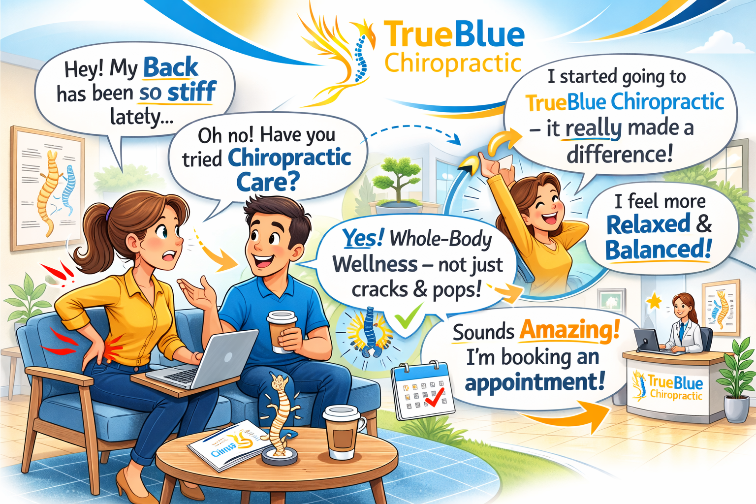 Feeling stiff after long hours at your desk? 🖥️ Don’t let back pain hold you back! At TrueBlue Chiropractic, we offer more than just quick fixes. Our holistic approach focuses on whole-body wellness, addressing the root causes of discomfort. 🌿 Whether it's tight muscles, stress, or poor posture, we can help you feel relaxed, balanced, and pain-free! 🧘♀️💆♂️