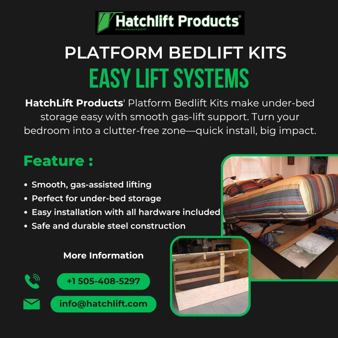 HatchLift Products brings you the easiest way to declutter! Our Platform Bedlift Kits offer smooth lift support & simple install. Call +1 505-408-5297 or shop online at HatchLift.com for your space-saving upgrade.