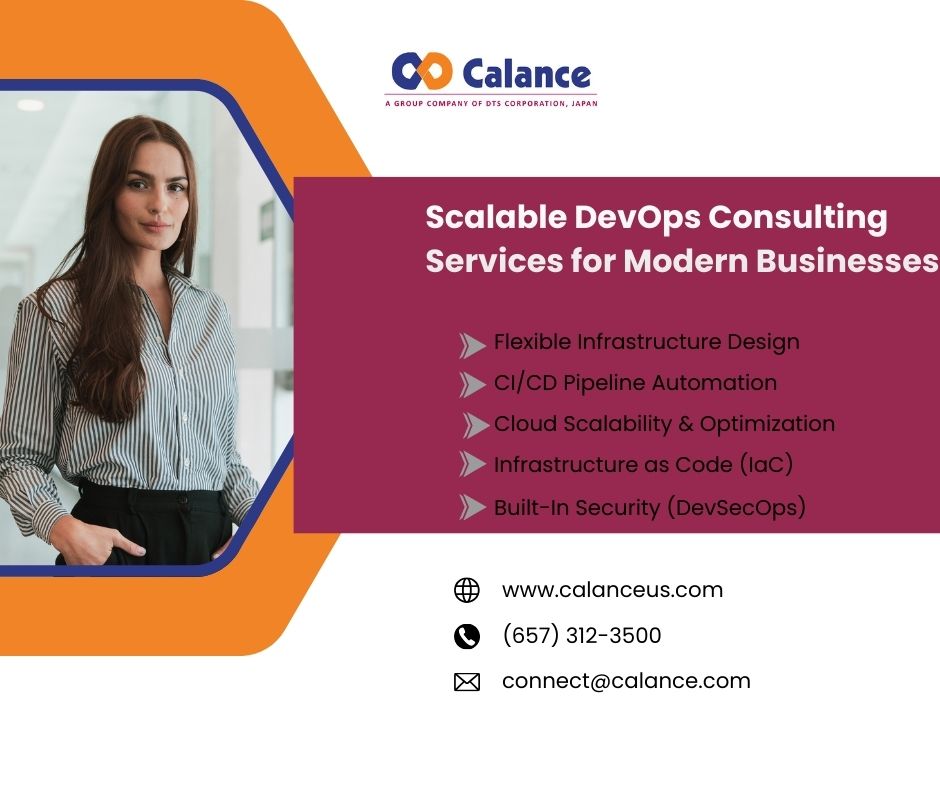Effective DevOps Consulting Services help businesses streamline development processes, improve collaboration, and accelerate software delivery. At Calance, we offer expert DevOps Consulting Services tailored to align with your business goals and technical requirements. Our specialists assess your current infrastructure, identify bottlenecks, and implement best practices such as CI/CD pipelines, automation, and cloud integration. By optimizing workflows and enhancing system reliability, we enable faster deployments and improved performance. Calance focuses on building scalable, secure, and efficient environments that support continuous innovation, helping organizations reduce operational costs while delivering high quality applications in today’s competitive digital landscape.